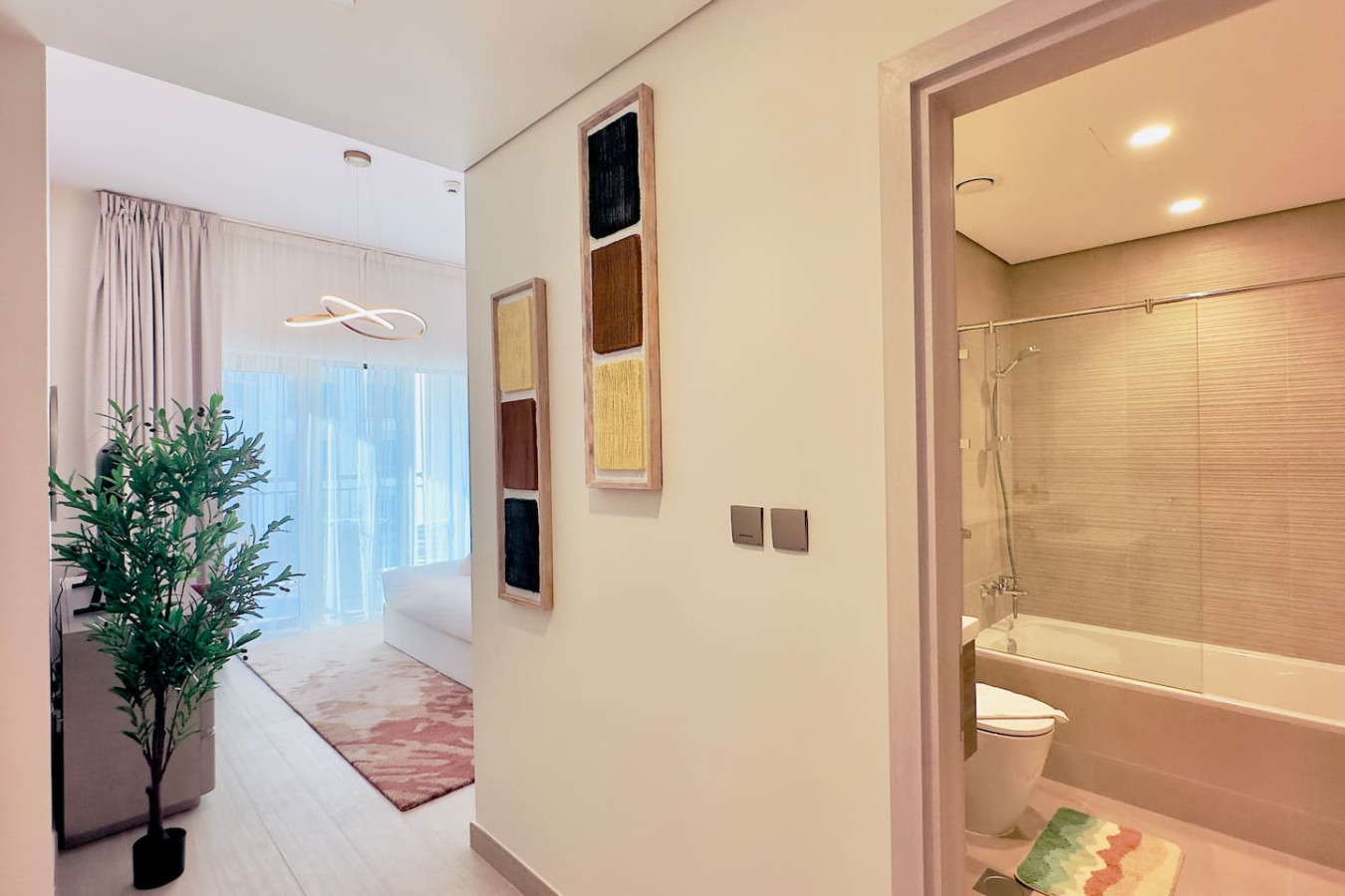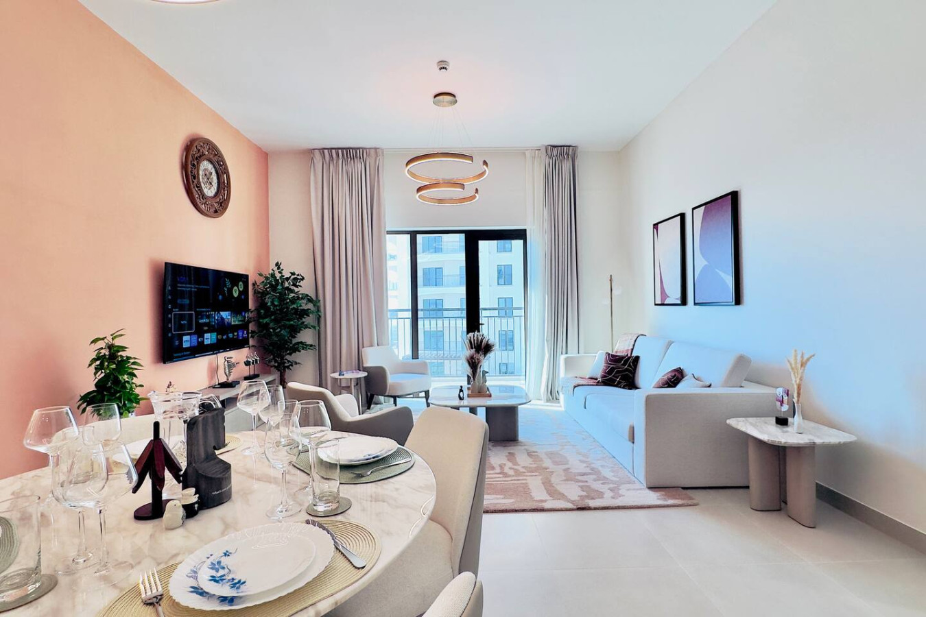 This professionally furnished apartment offers comfort, space, and natural light throughout.