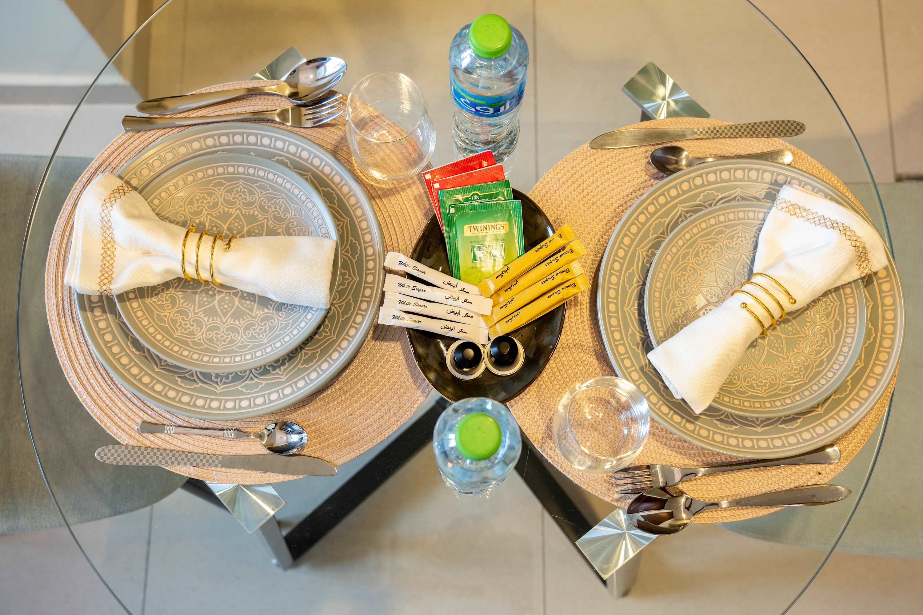 Late check-out incurs a 100 AED/hour fee until 1 PM.