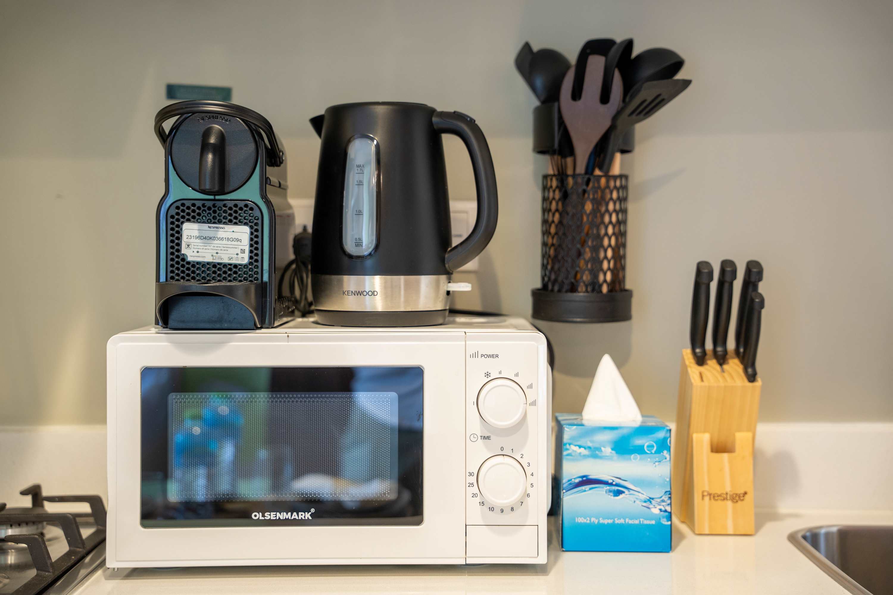 – fully equipped kitchen with stove, oven, microwave and refrigerator