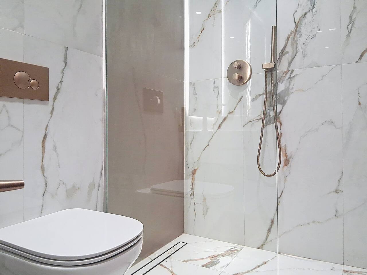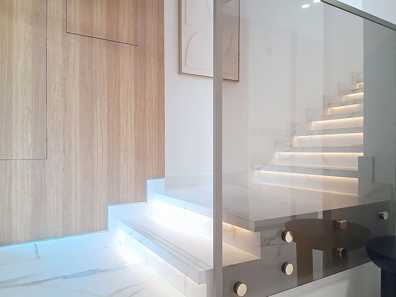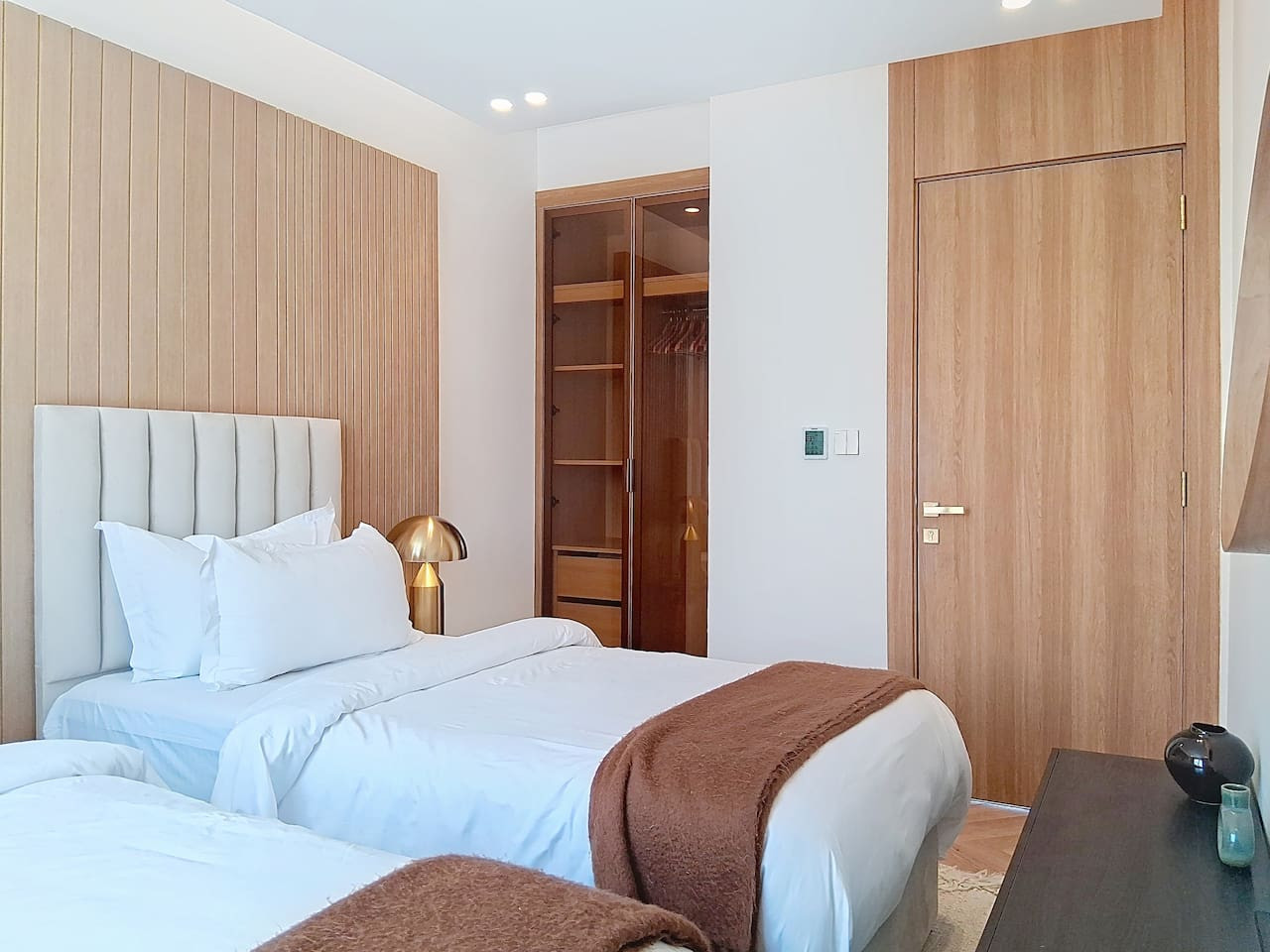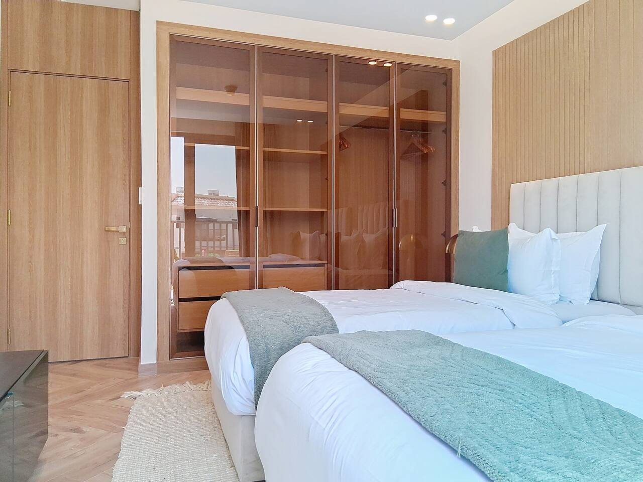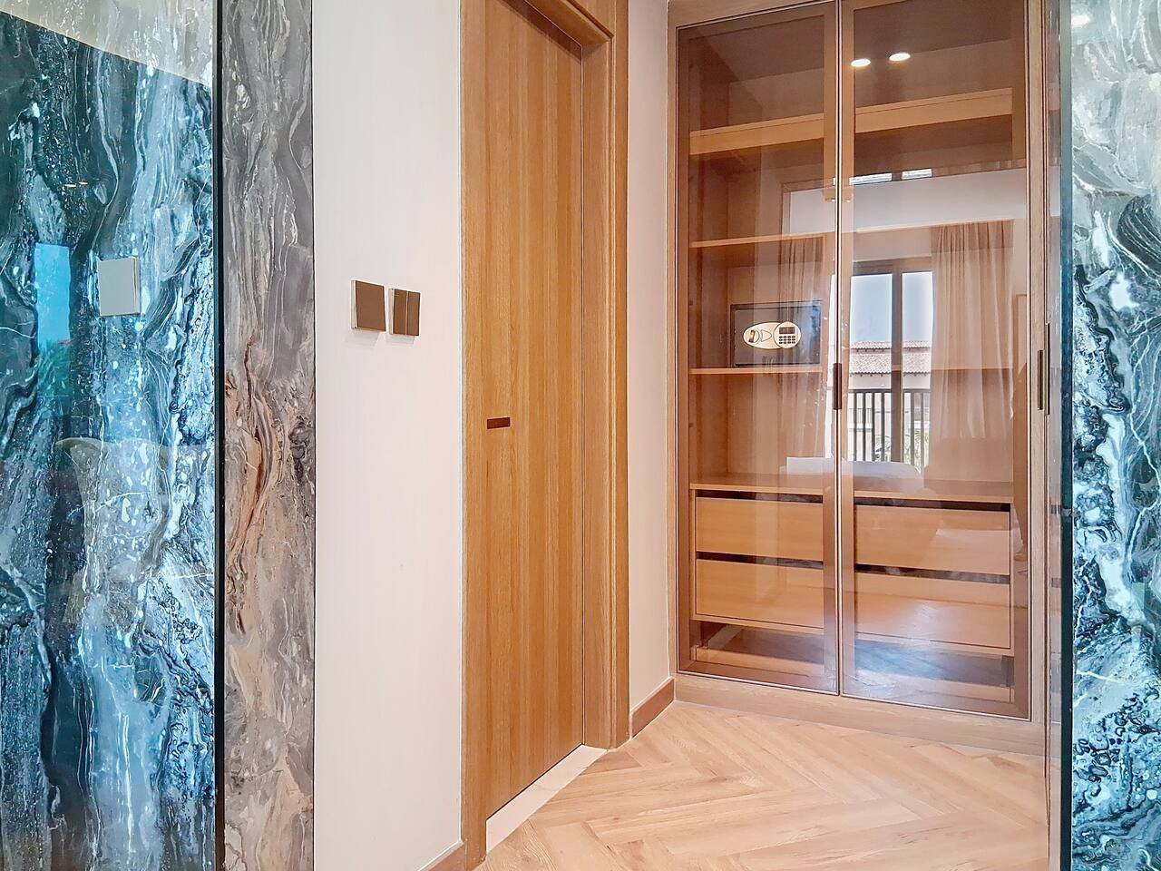 – Built-in glass wardrobe providing convenient storage space