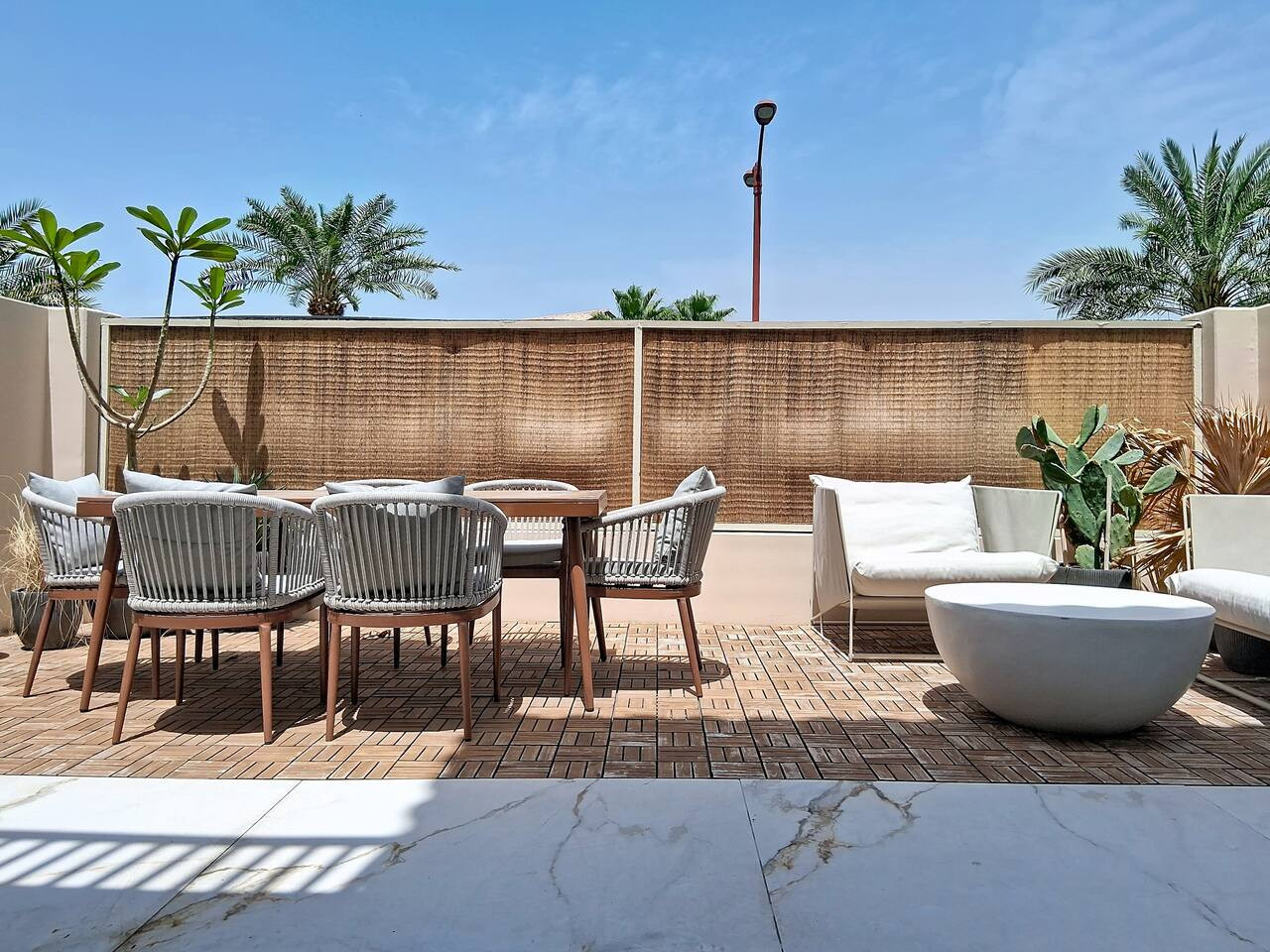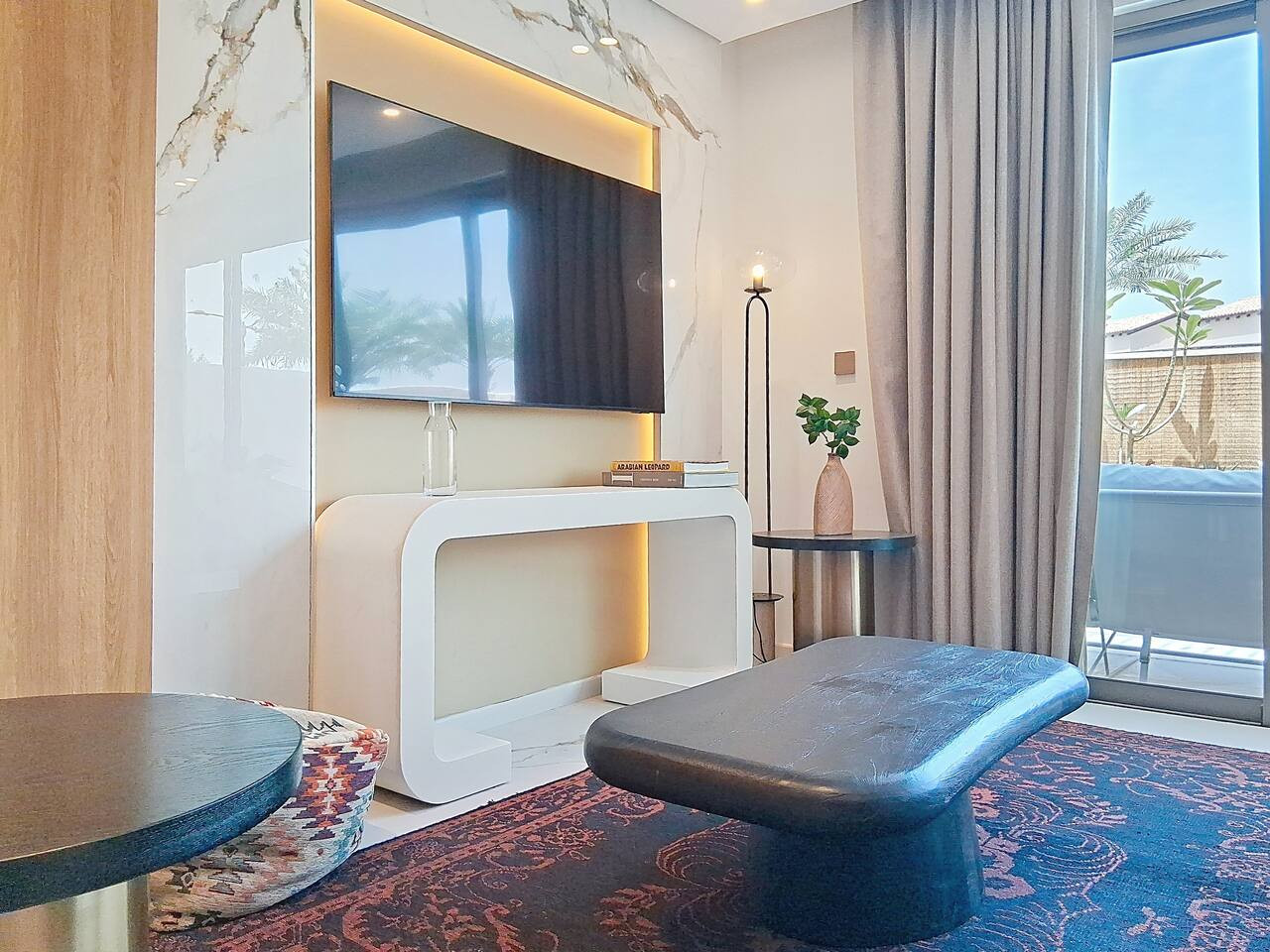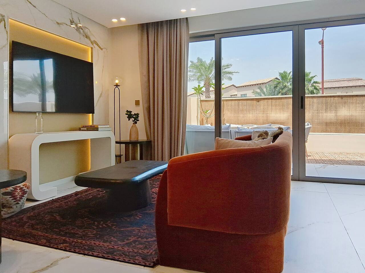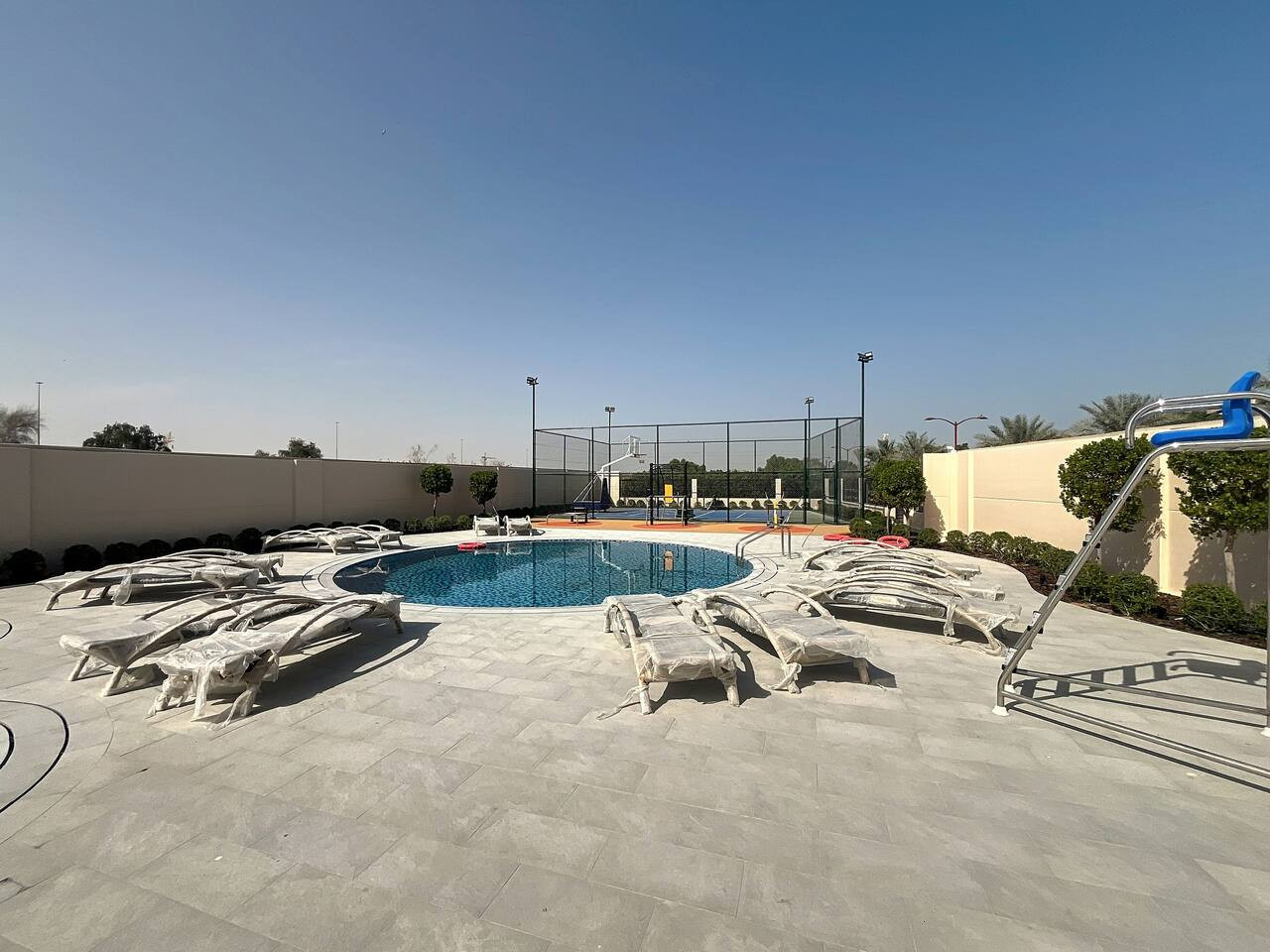 Please note that the area is somewhat isolated, and nearby attractions will require a taxi or car to reach. For your convenience, guests can use Deliveroo, Talabat, or the Instashop app to easily order food and groceries.