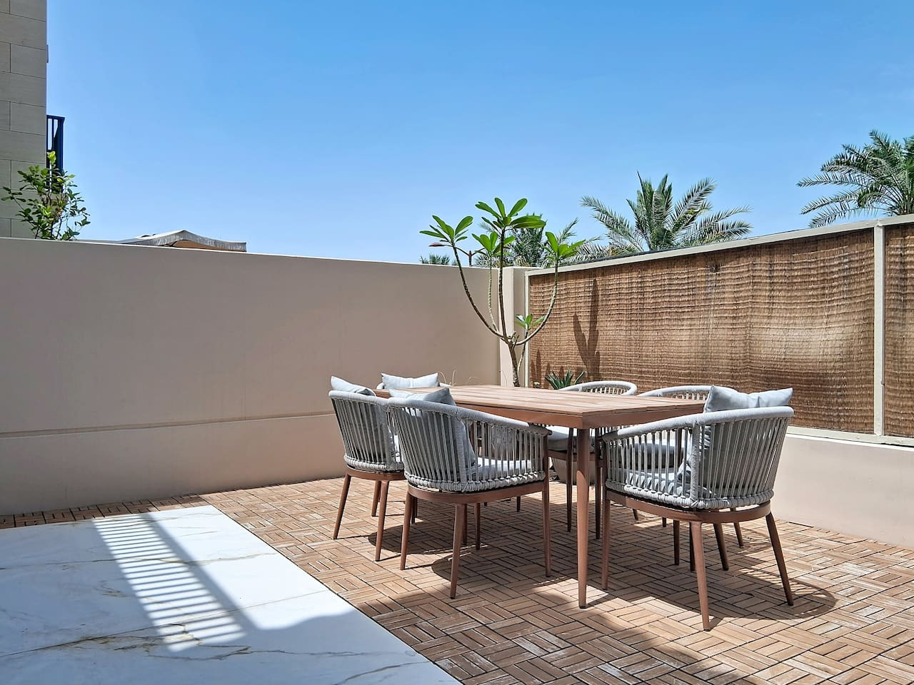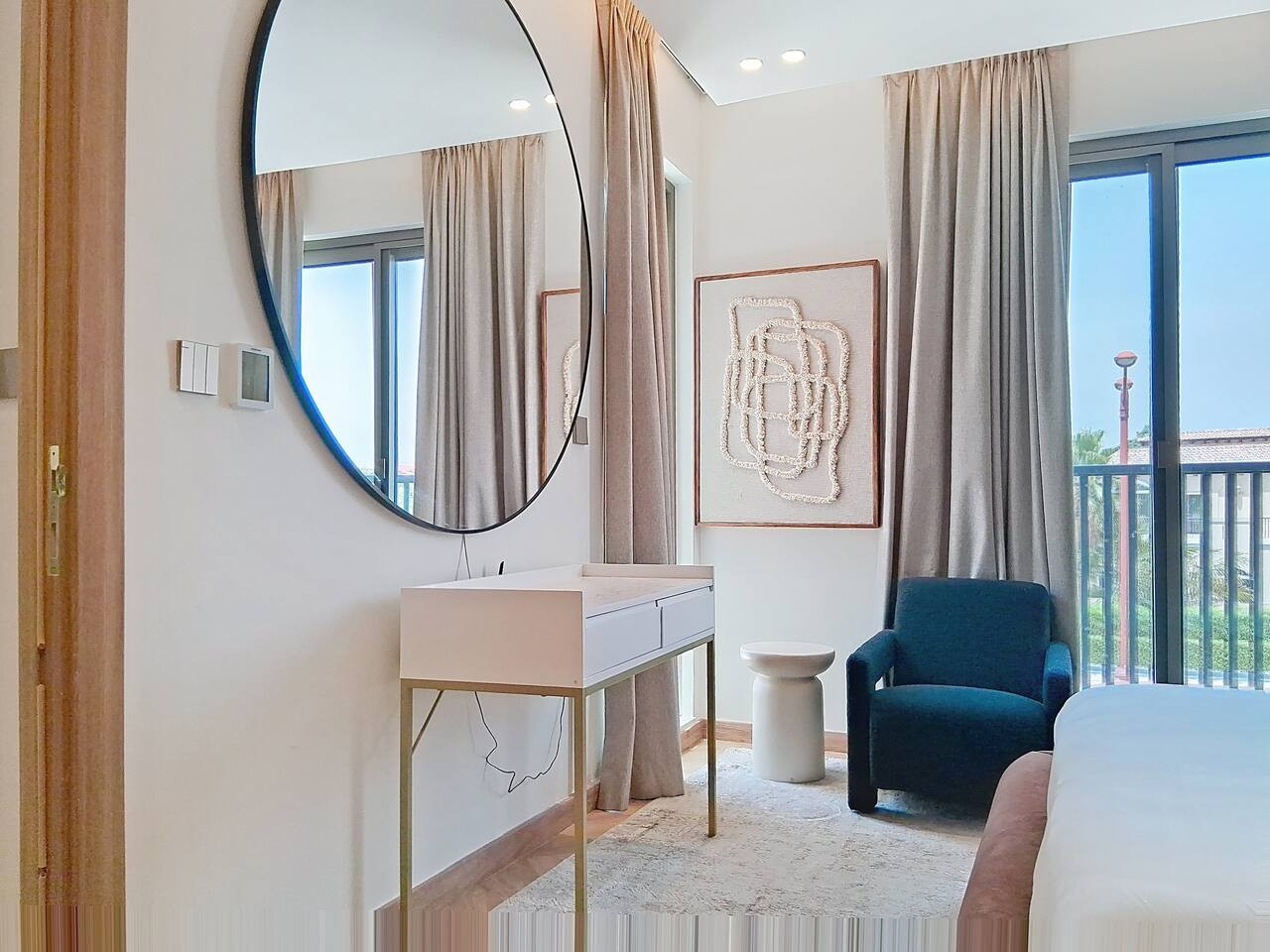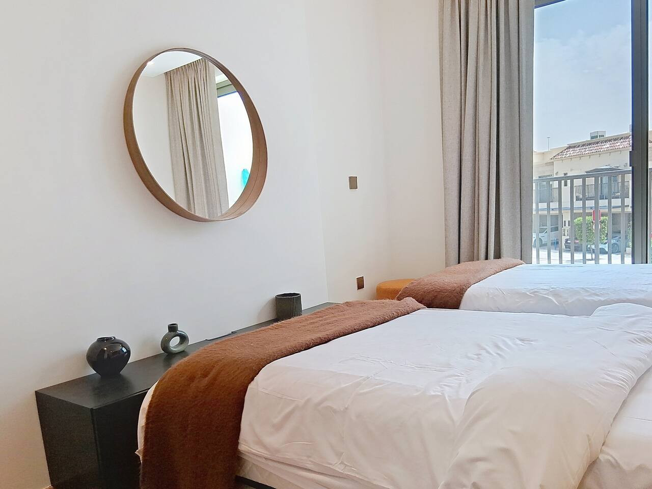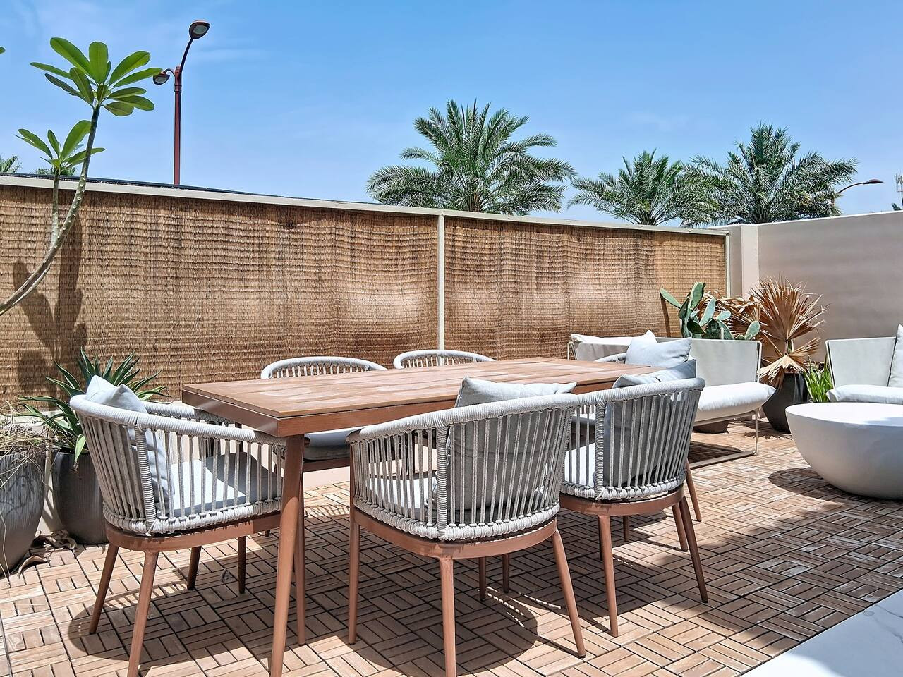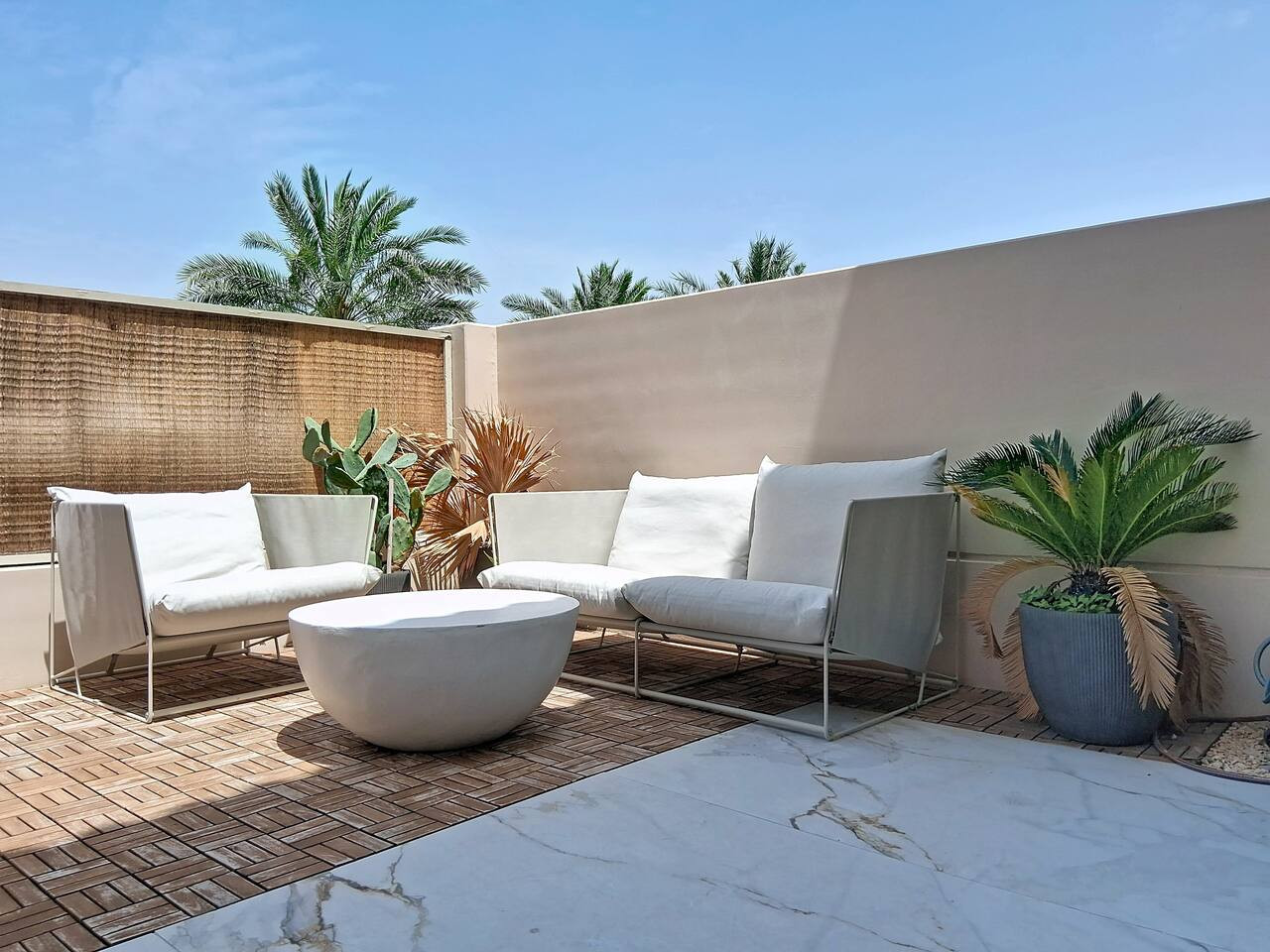 Please note that the area is somewhat isolated, and nearby attractions will require a taxi or car to reach. For your convenience, guests can use Deliveroo, Talabat, or the Instashop app to easily order food and groceries.