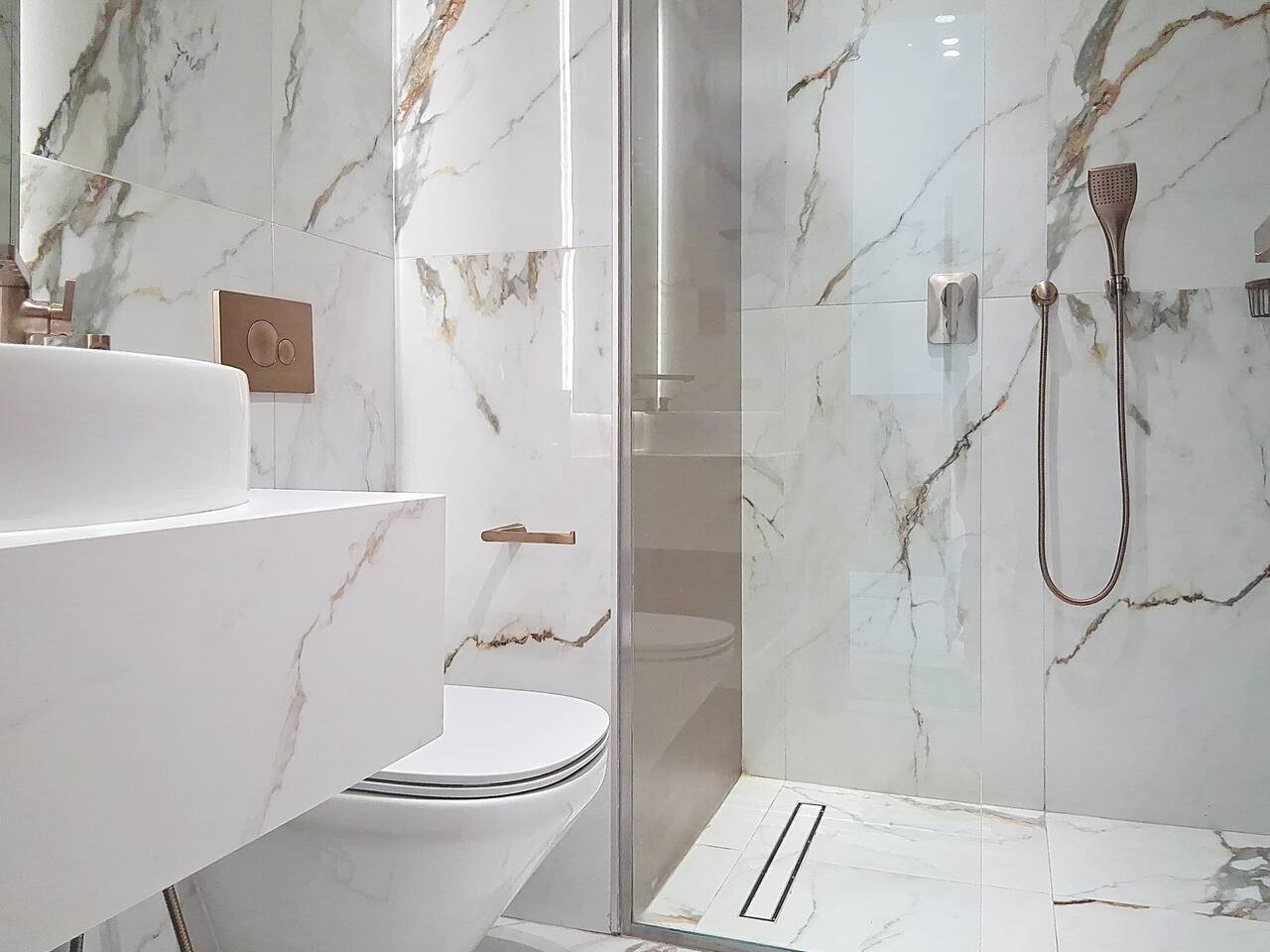 – En-suite bathroom featuring a walk-in shower and essential amenities