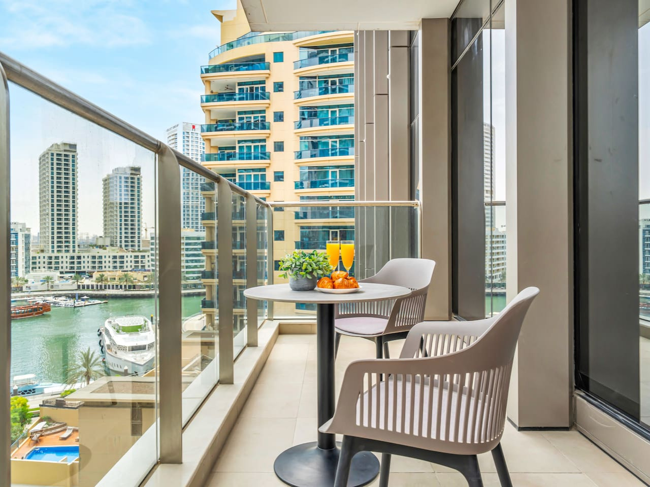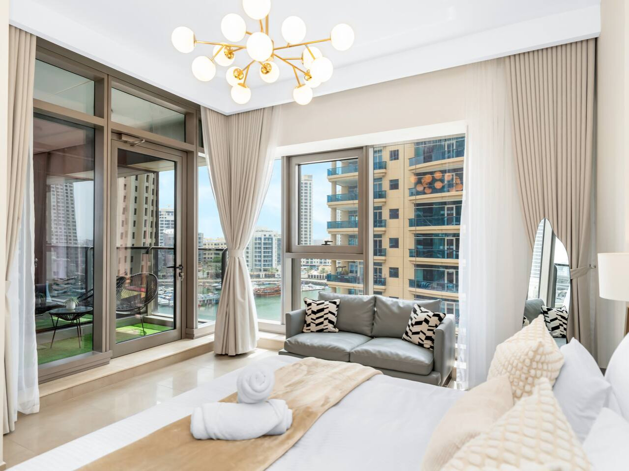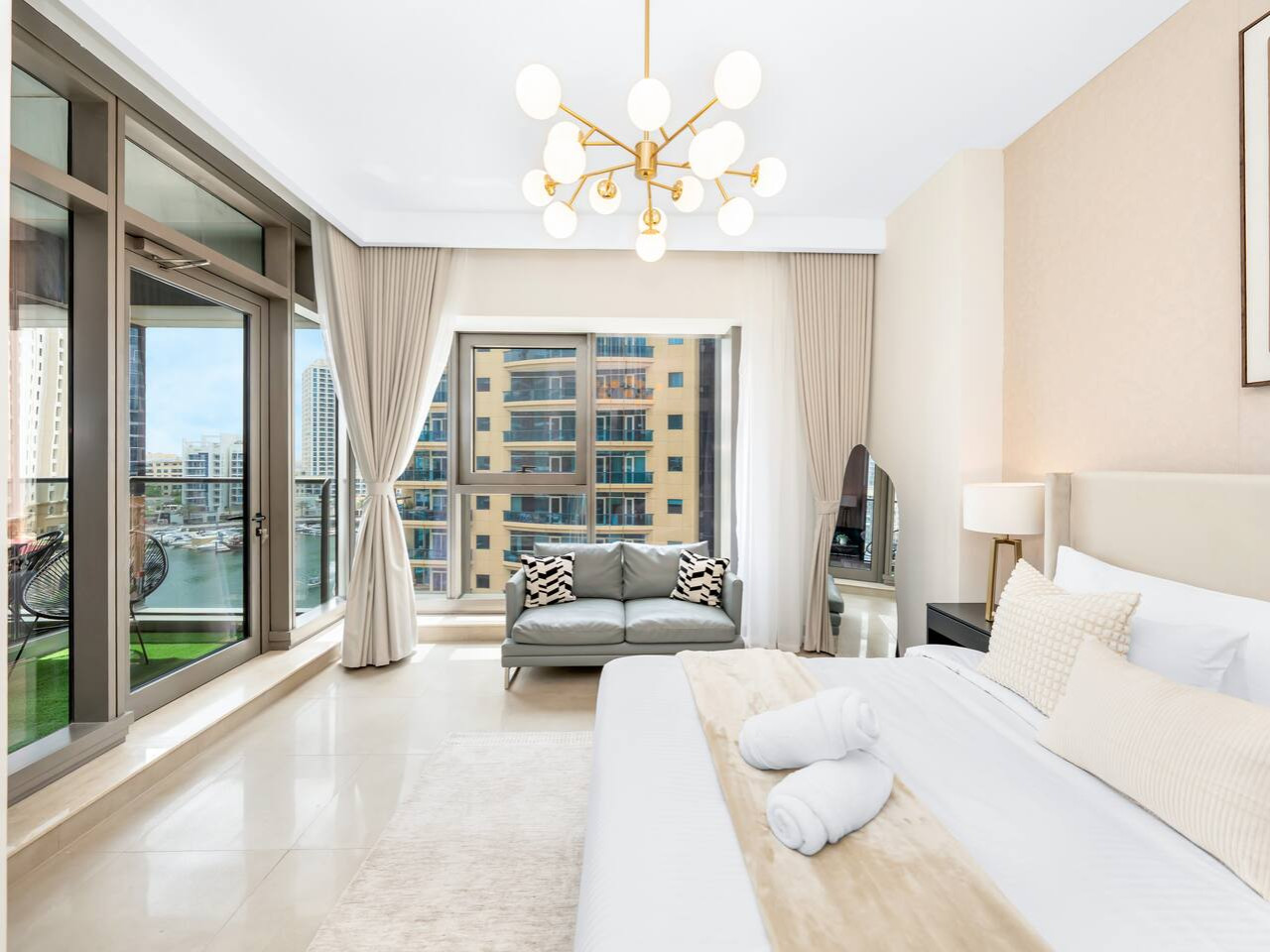 – Two seater Sofa; private balcony with marina views