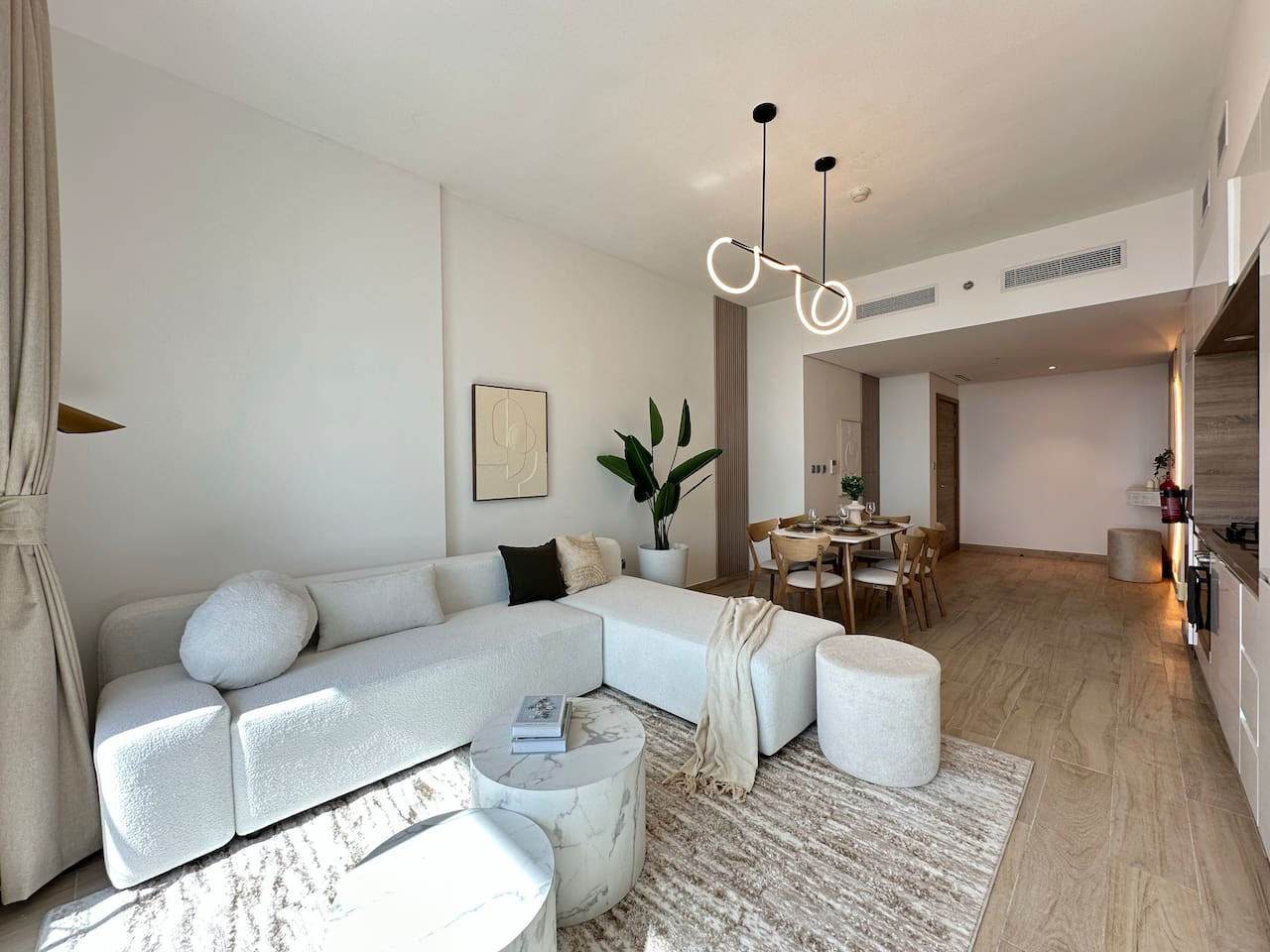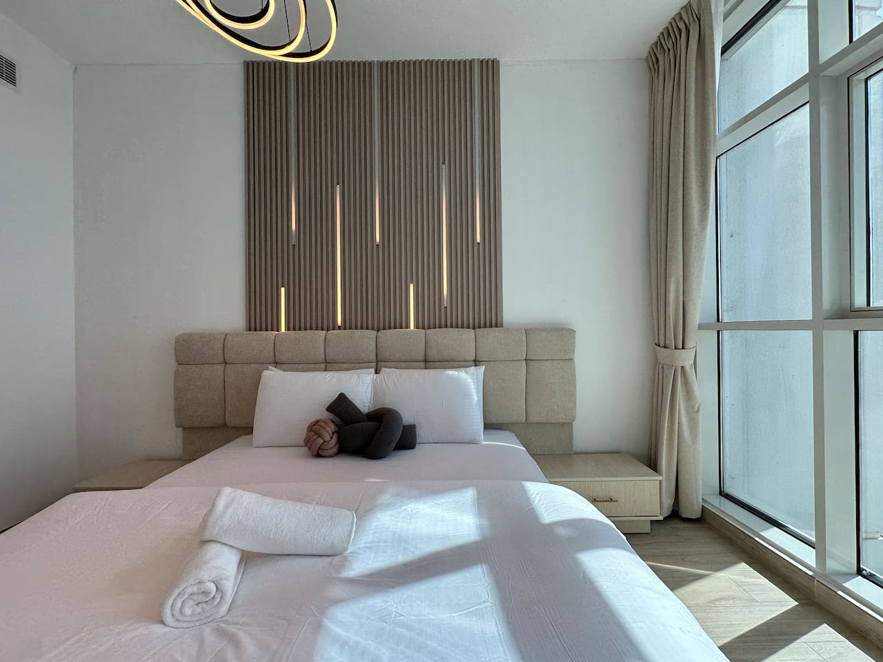 This stylish 2-bedroom apartment, located in Studio One Tower, Dubai Marina, can accommodate up to 10 guests and combines modern design with exceptional comfort.