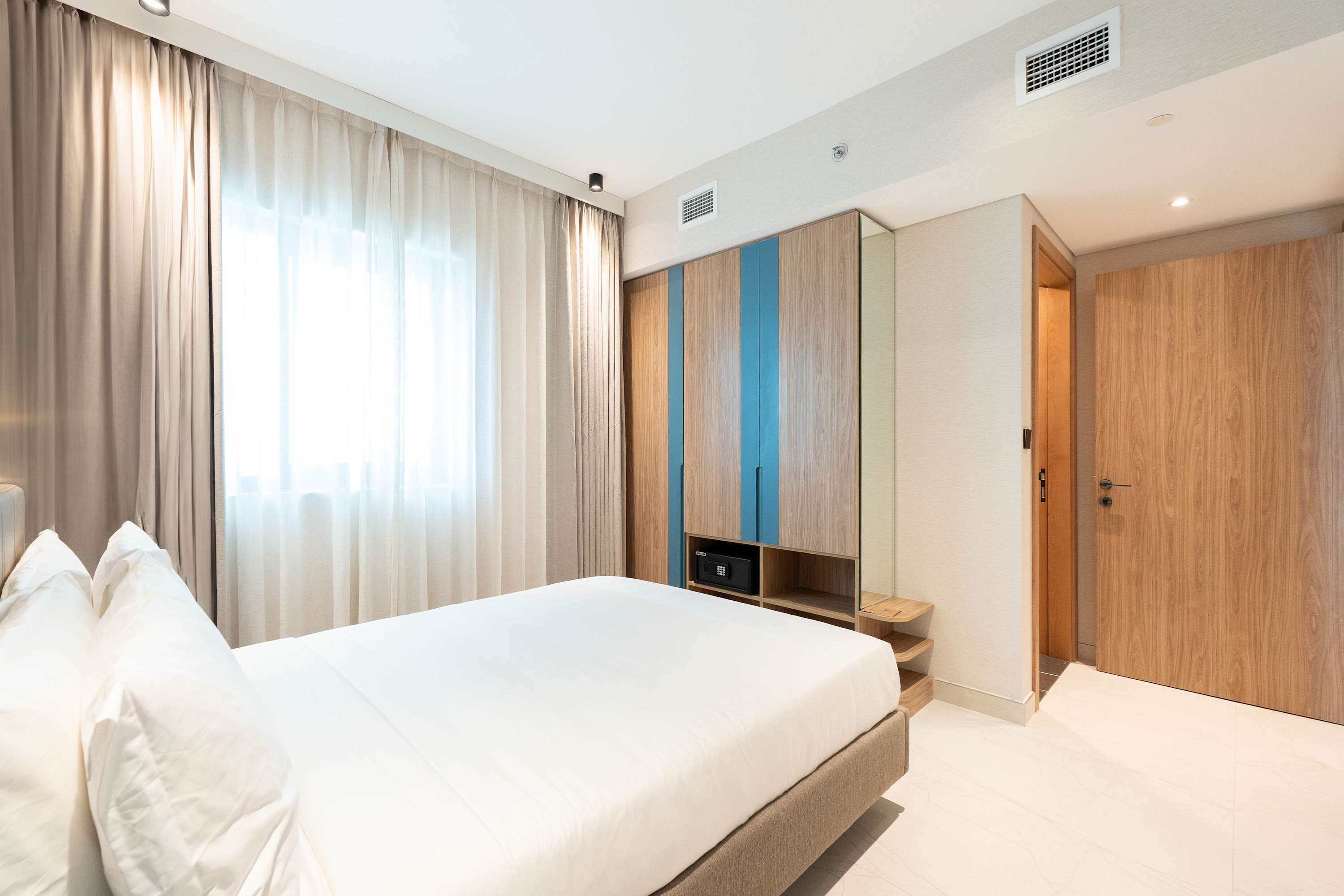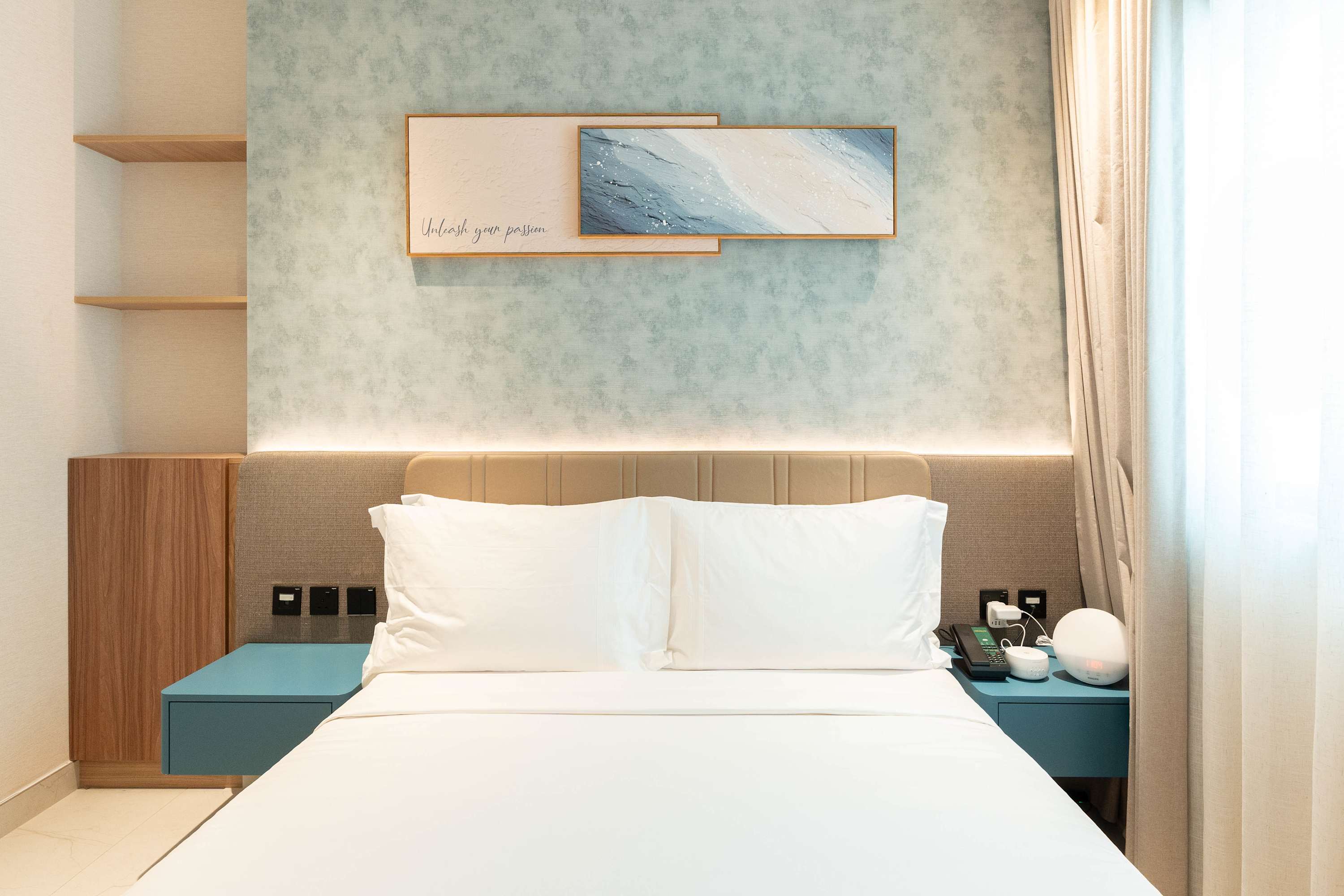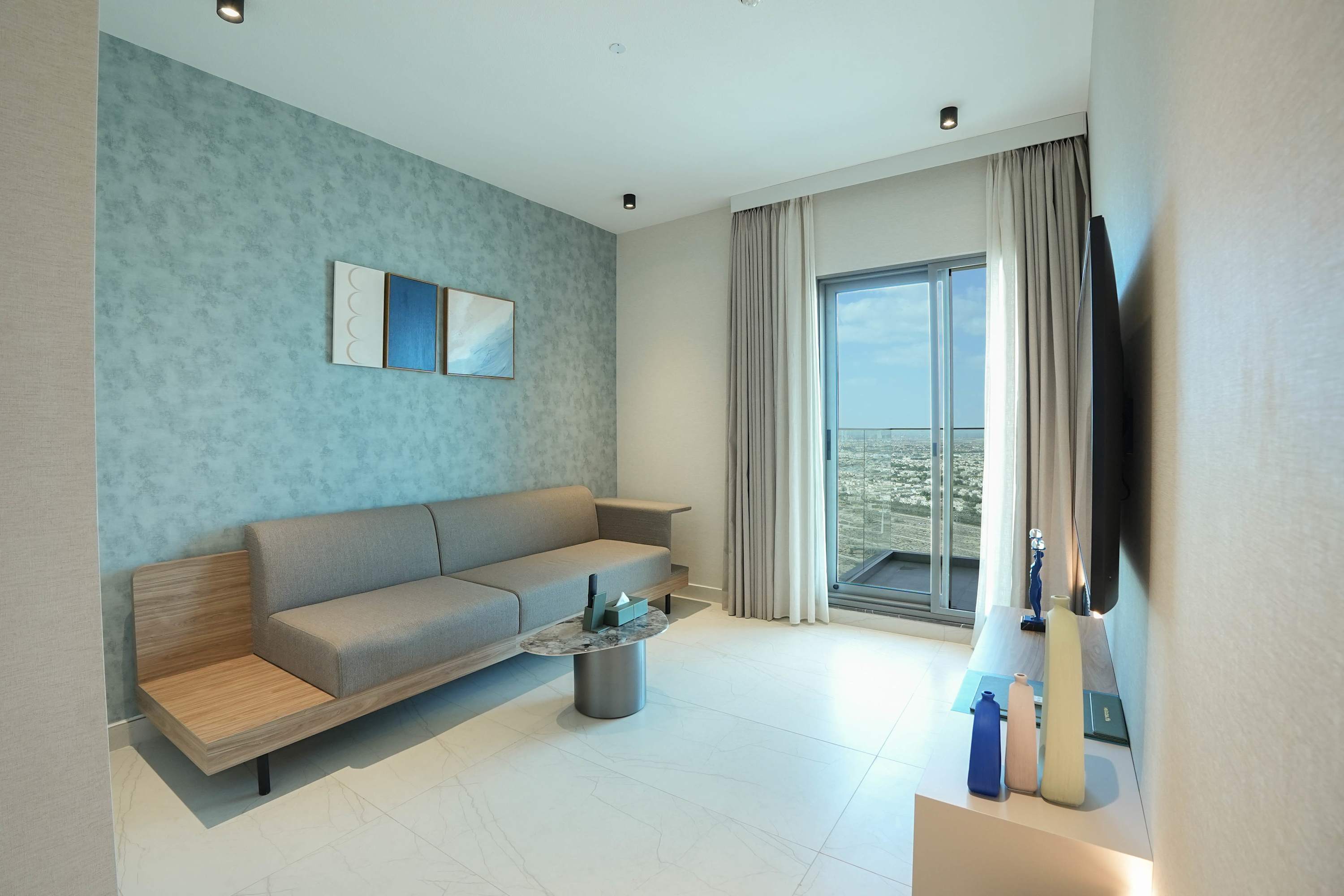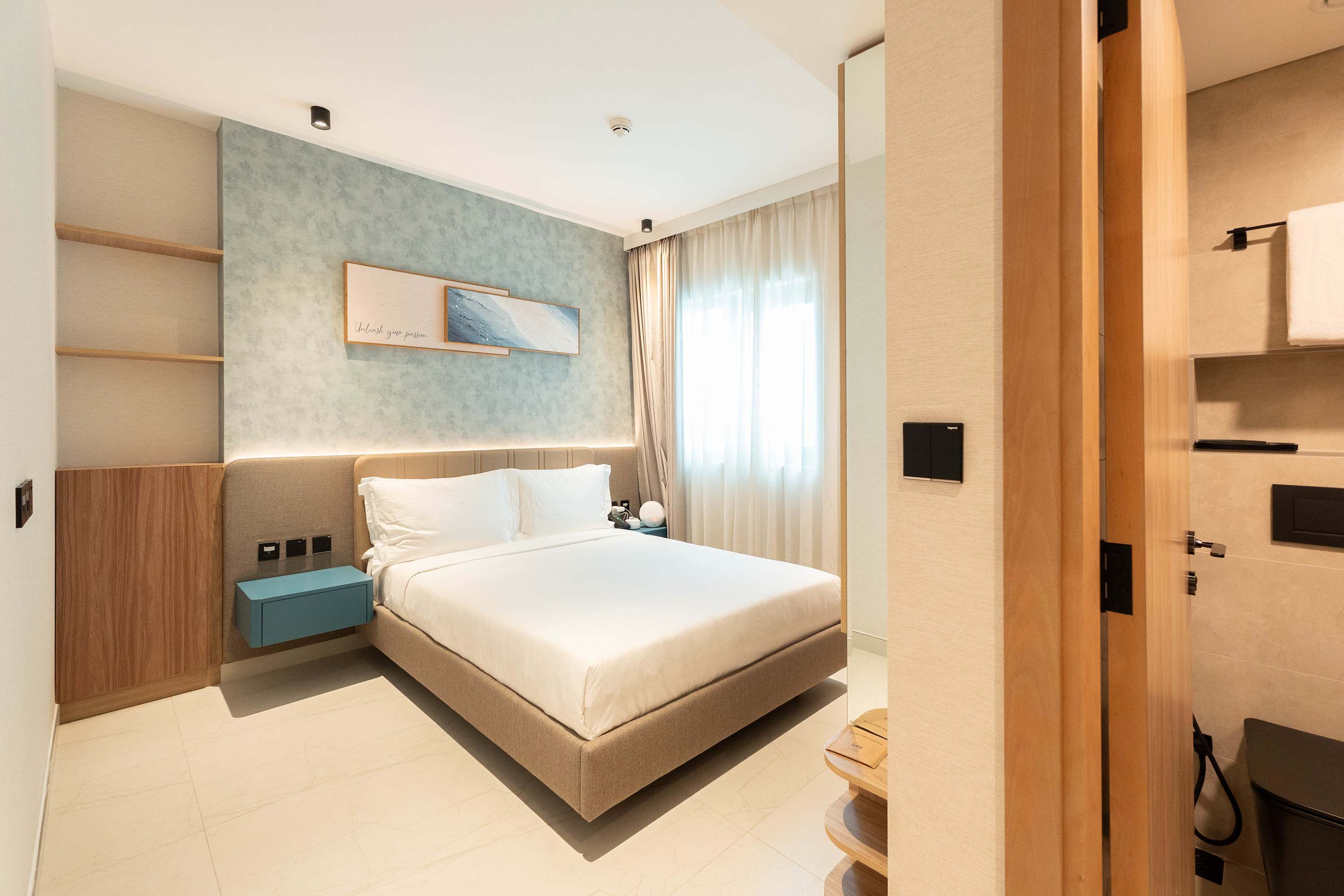 Escape to Tranquil Wellness Tower, a brand-new luxury residence in Jumeirah Village Triangle. This elegant 1-bedroom apartment offers premium comfort with a serene king bedroom, blackout shades, stylish living space, and a private balcony with city views. Enjoy shared pool and gym access, plus an on-site wellness clinic featuring longevity therapies, spa rituals, and recovery experiences (booked separately). Perfect for relaxation or remote work. ✨ Book now for a stay centered on well-being.