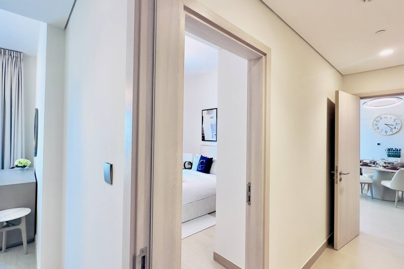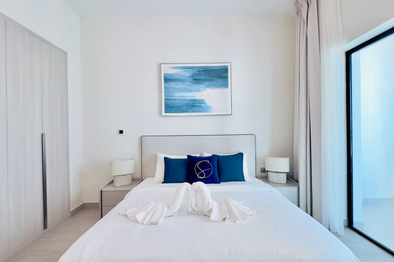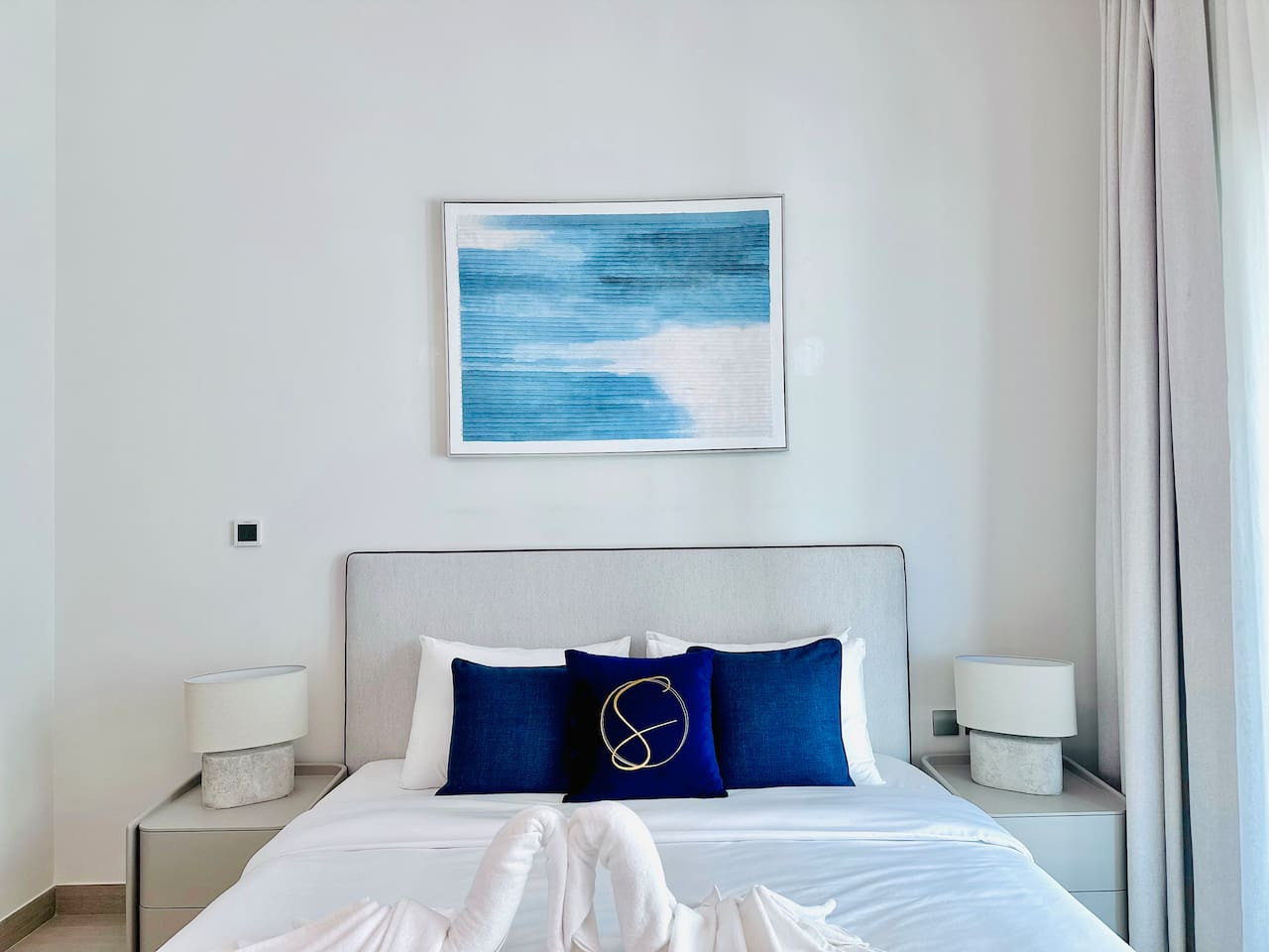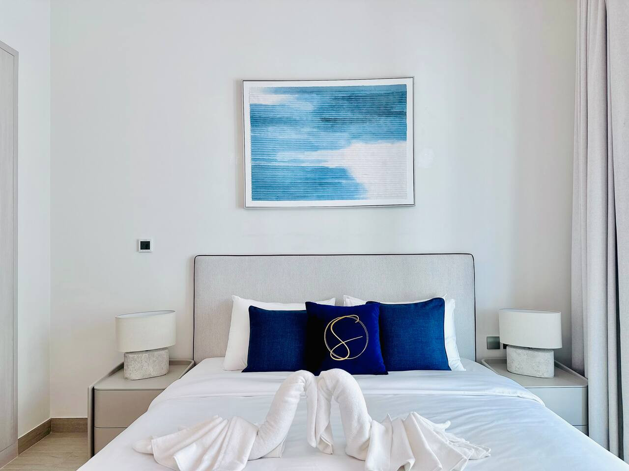 The apartment is professionally cleaned before every stay and designed with a calm, modern aesthetic to create a comfortable and welcoming atmosphere.