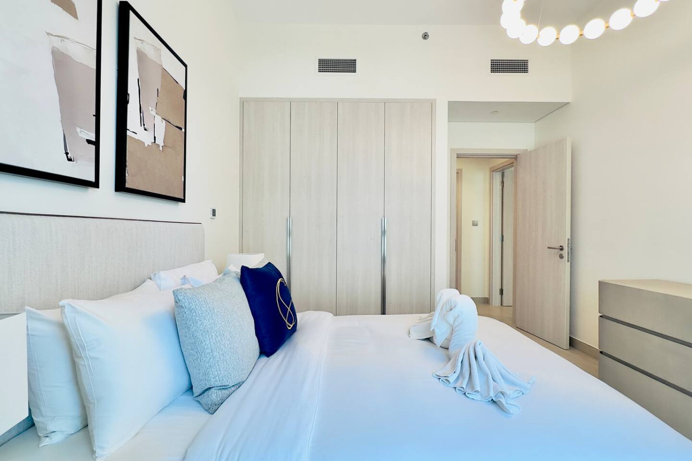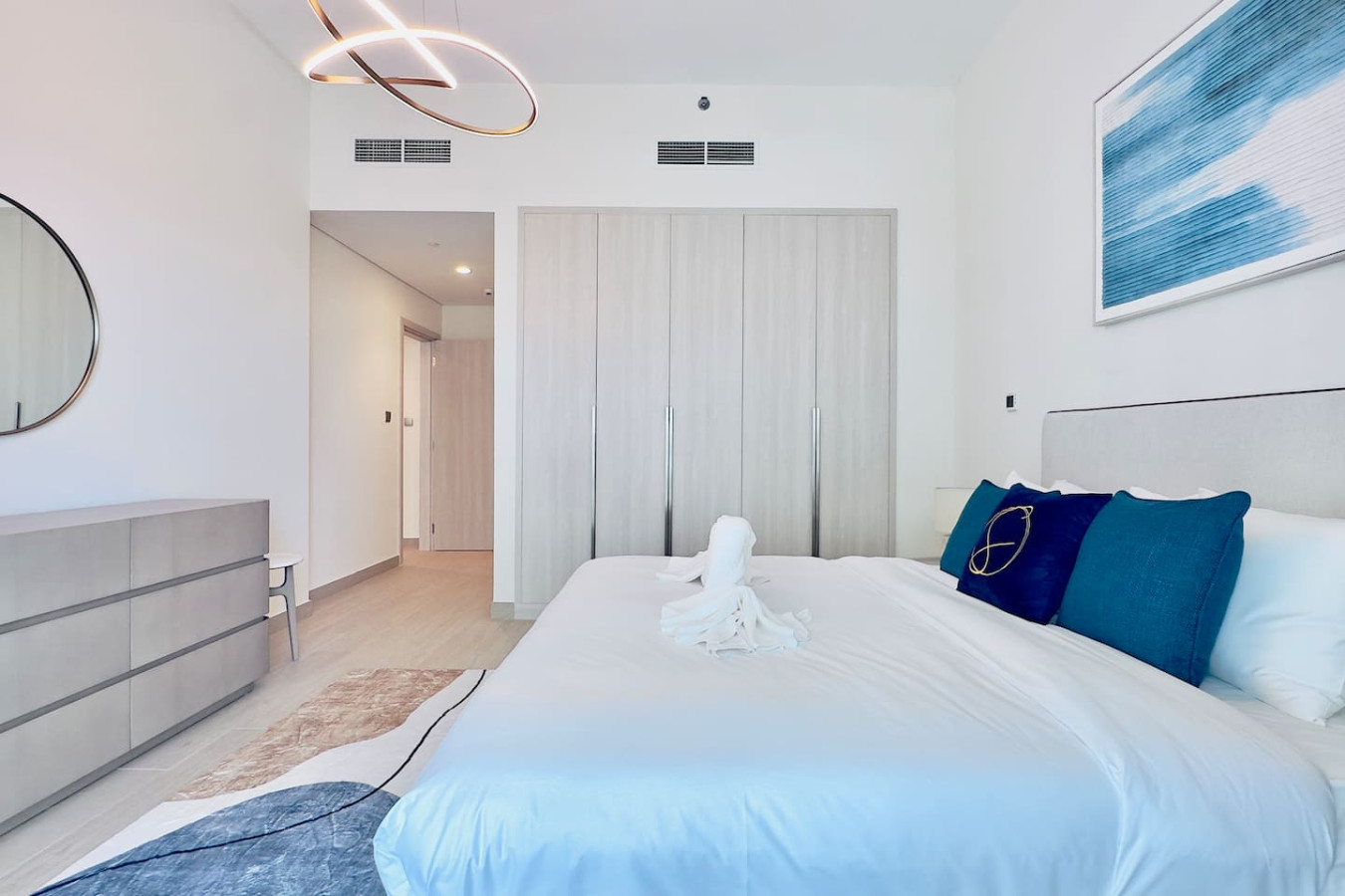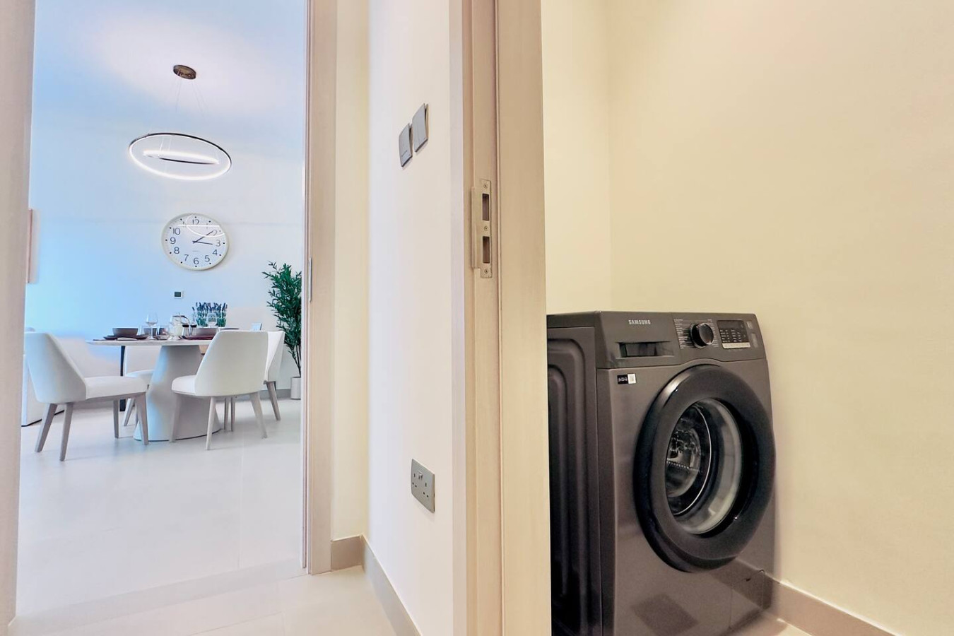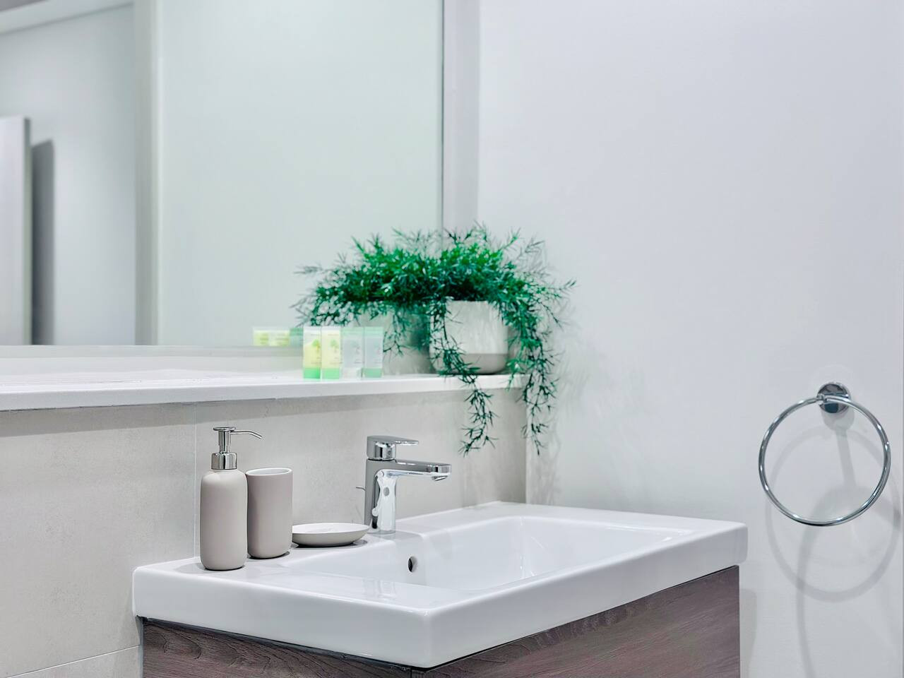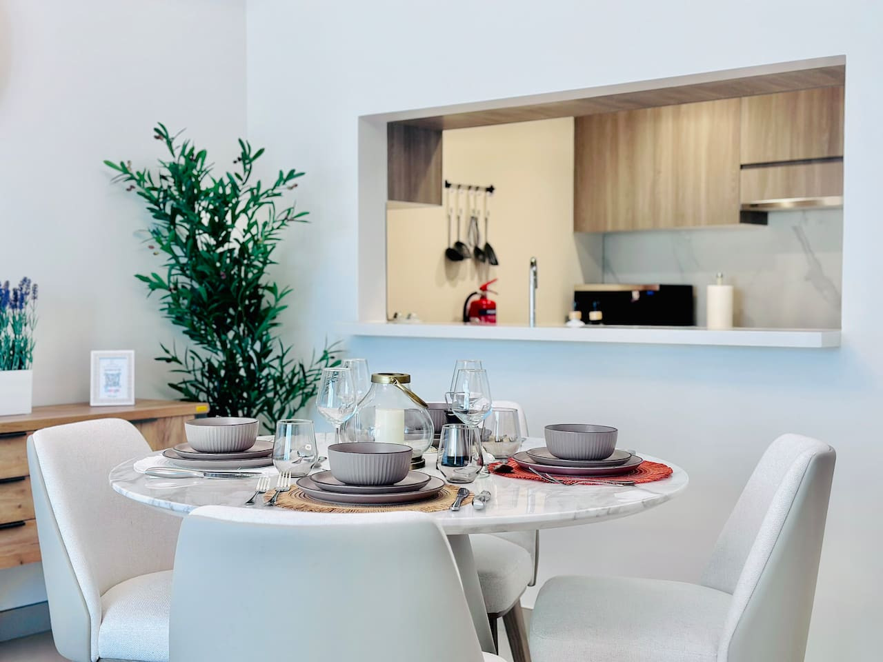 The apartment is professionally cleaned before every stay and designed with a calm, modern aesthetic to create a comfortable and welcoming atmosphere.