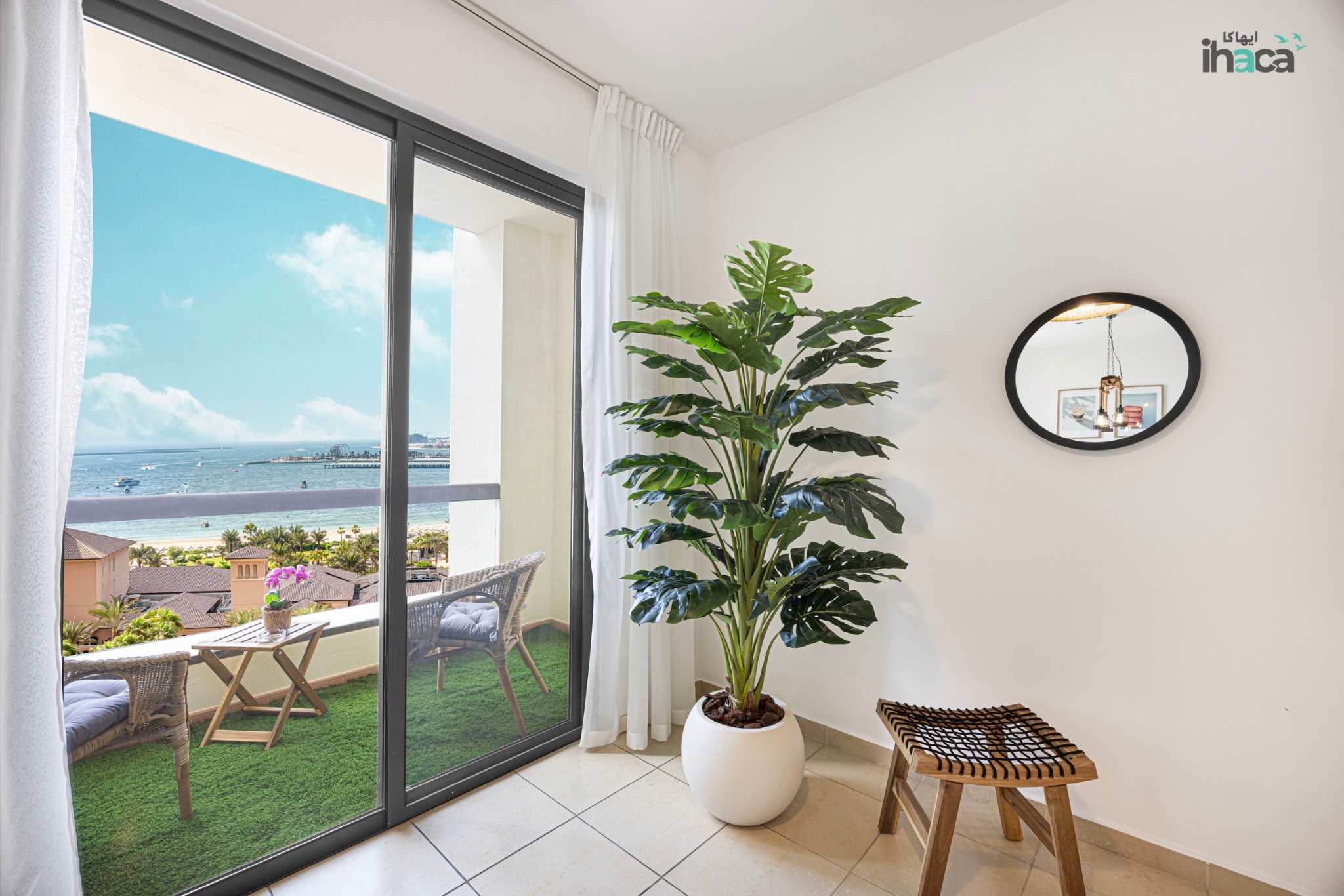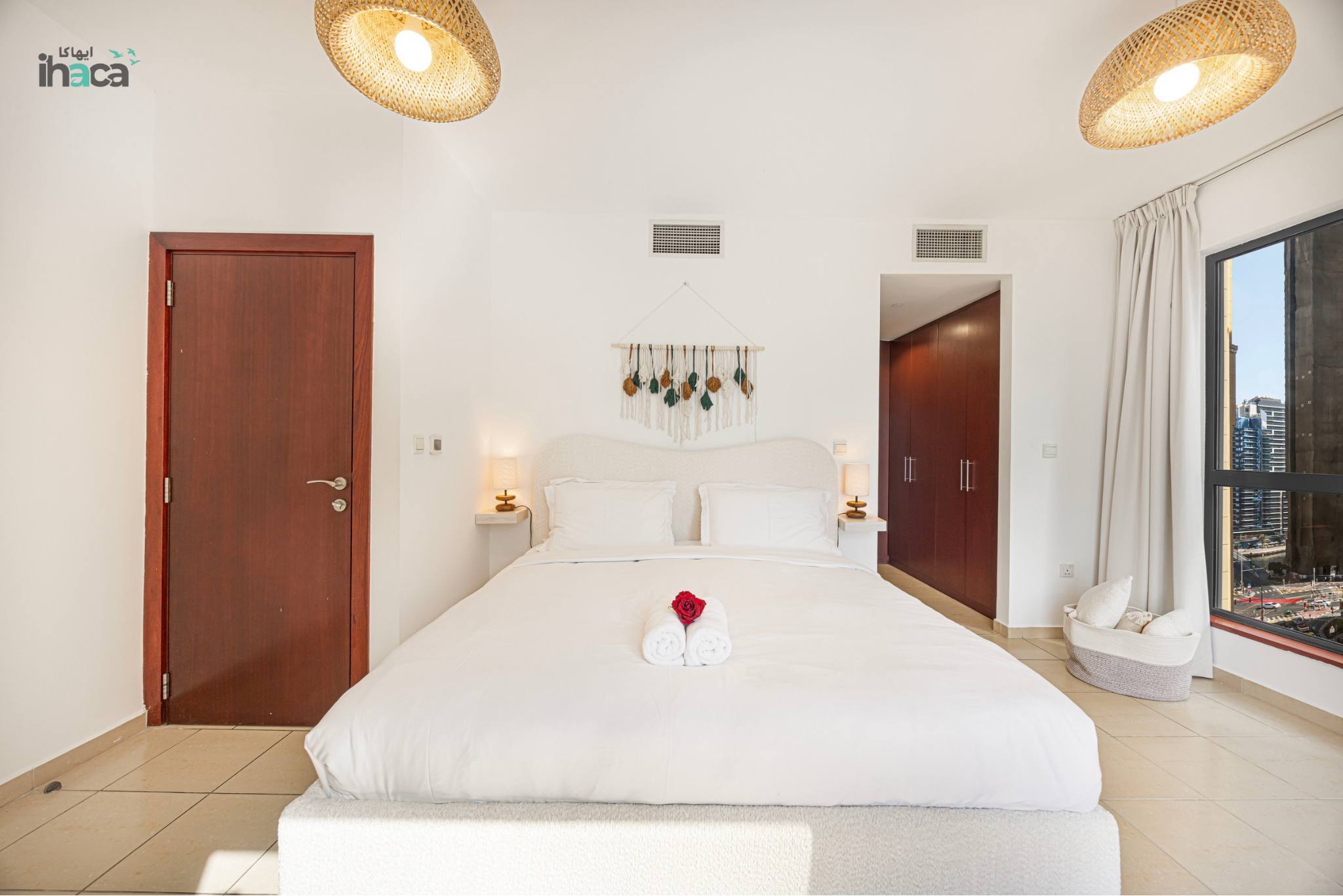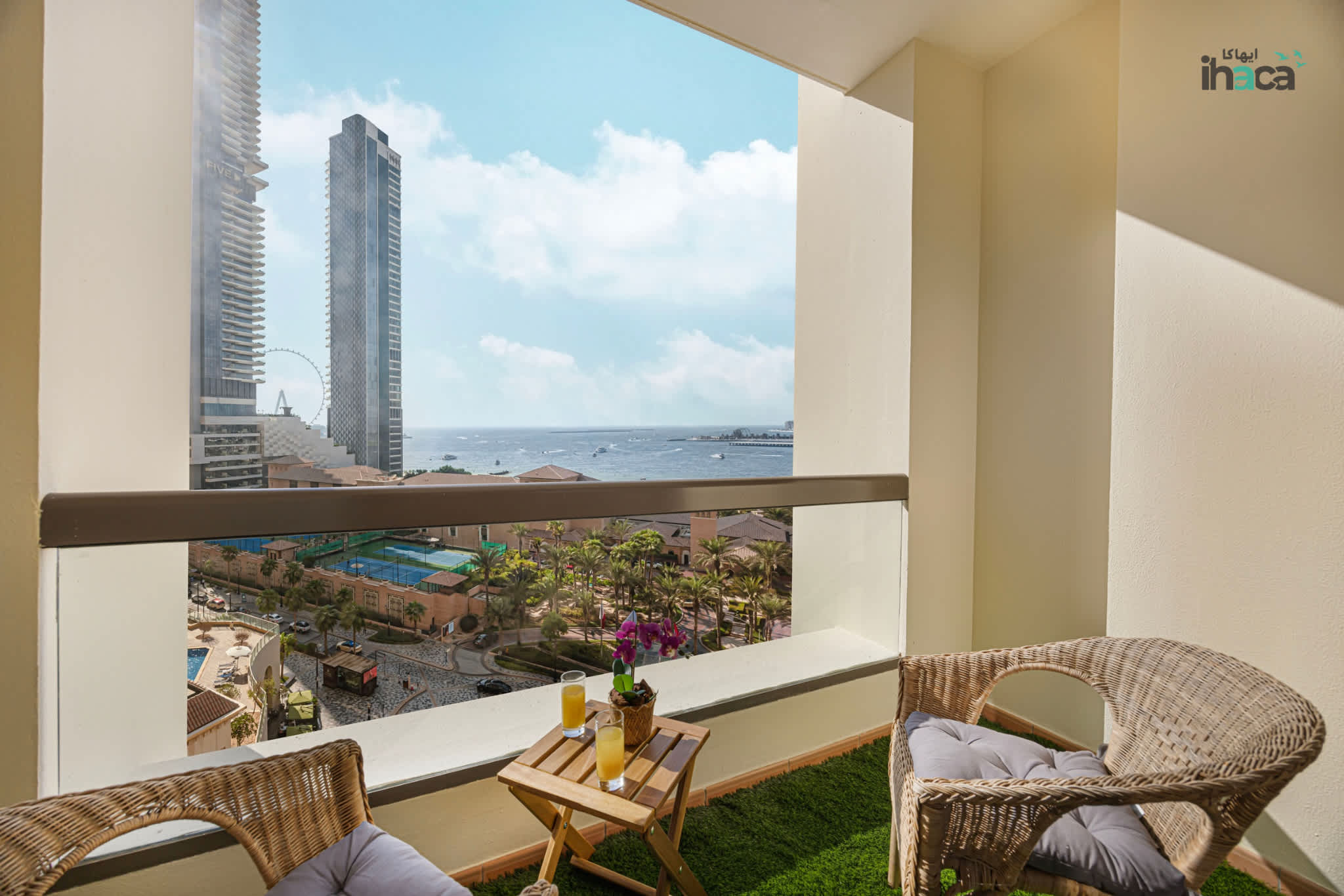Escape to Ihaca, a private 1-bedroom boho retreat in the heart of Jumeirah Beach Residence (JBR). This 7th-floor gem offers stunning panoramic views of Ain Dubai and the sea from a private balcony. Perfect for couples or solo travelers, this serene space features direct beach access, a pool, and gym. Experience the best of Dubai’s vibrant beach life with chic cafes and shops just steps away.