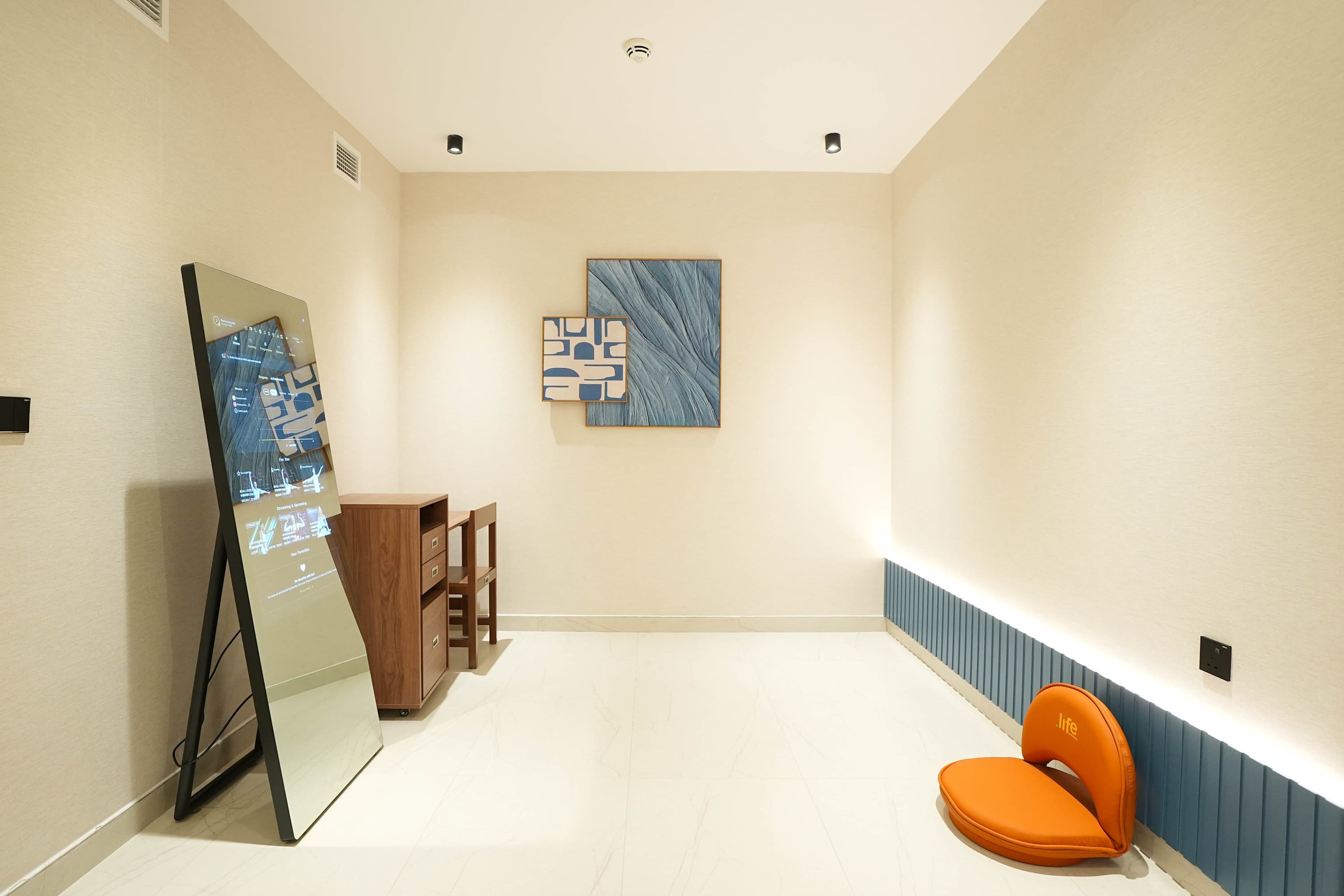 Stay high above Dubai in a luxury wellness-focused tower in JVT. This private 34th-floor residence offers skyline views, calm interiors, and access to a full wellness clinic within the building. Enjoy Ayurvedic therapies, acupuncture, cupping, advanced biohacking treatments like HBOT oxygen therapy, cold plunge, infrared sauna, red light therapy, yoga, Pilates, and more. Perfect for rest, recovery, remote work, or a refined city escape.