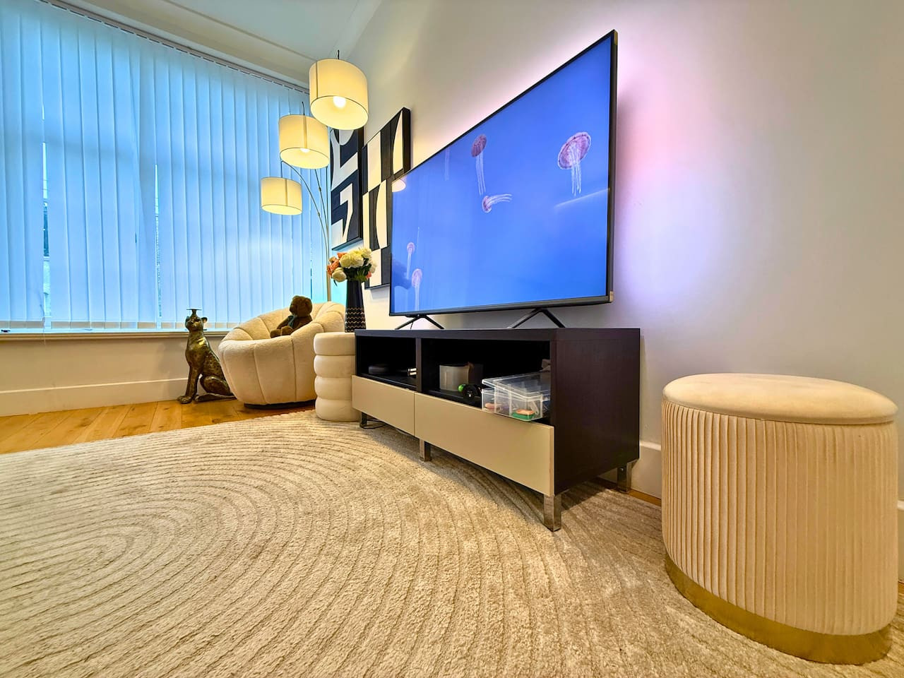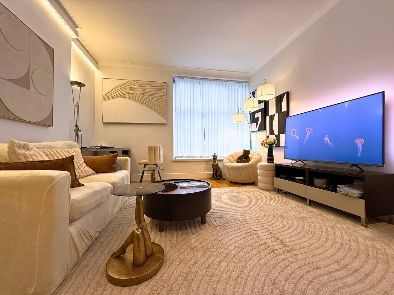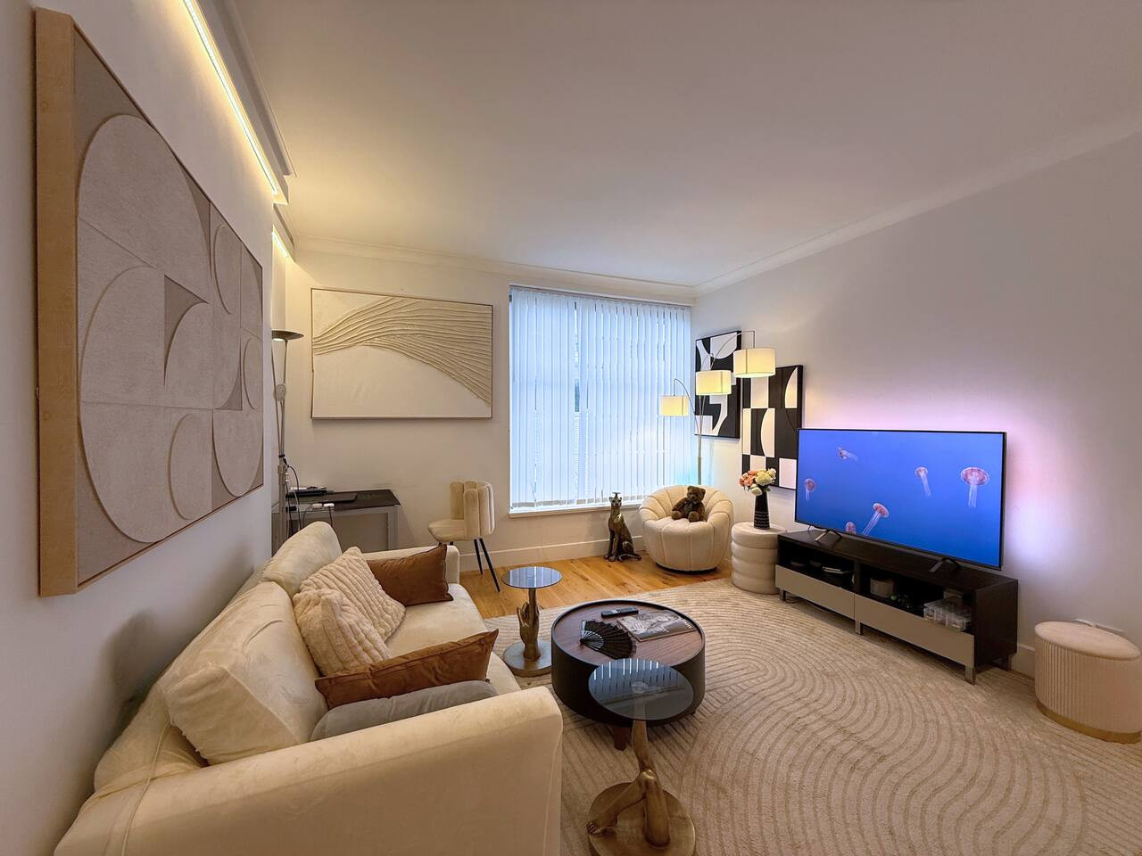 Enjoy rare-in-London air conditioning, fast Wi-Fi for work and streaming, and a bright living area with a large HD smart TV for cosy nights in.