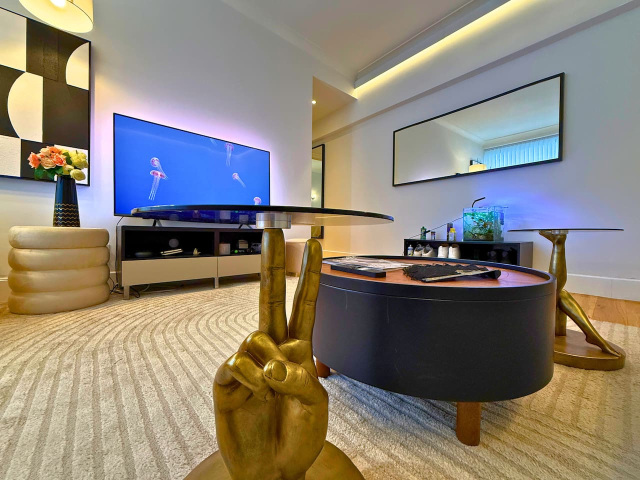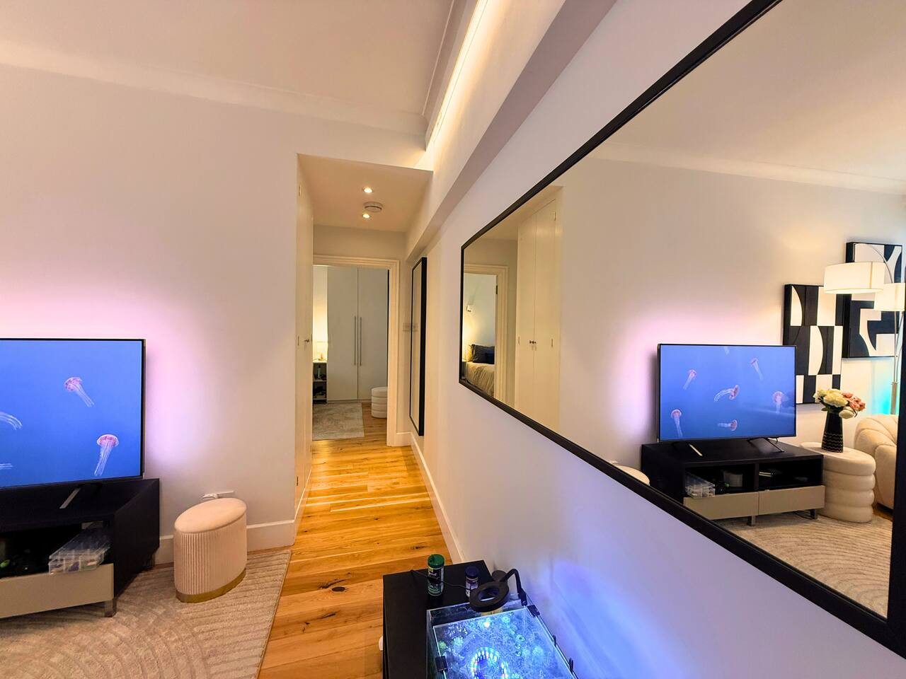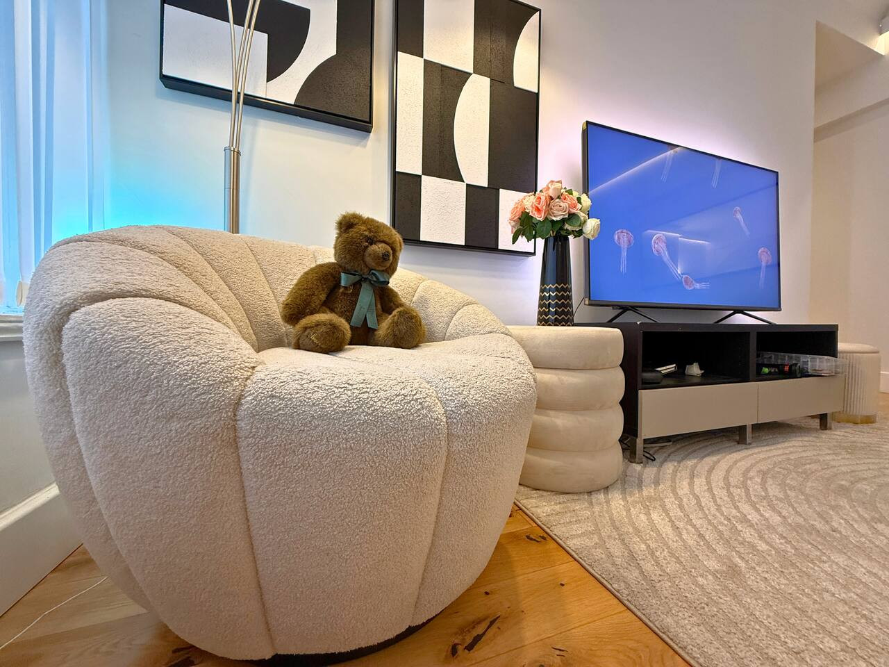 Enjoy rare-in-London air conditioning, fast Wi-Fi for work and streaming, and a bright living area with a large HD smart TV for cosy nights in.