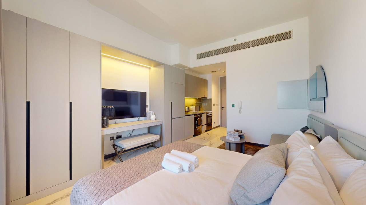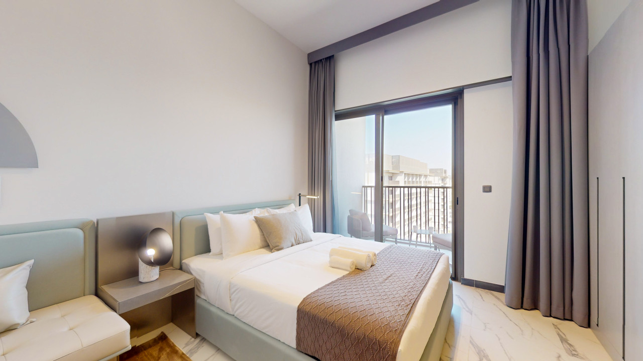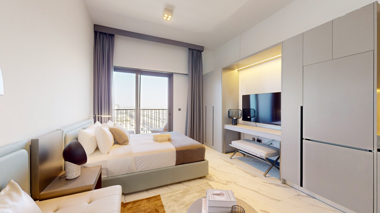 Experience the ultimate Dubai retreat at this elegant studio apartment in the tranquil Meydan community. A tastefully furnished space designed to provide guests comfort and relaxation during their stay. With convenient access to Dubai Mall for premier shopping and dining experiences, as well as the iconic Burj Khalifa just minutes away – this is the perfect blend of serenity and excitement! Its prime location makes this place it an ideal home base for your Dubai adventure!