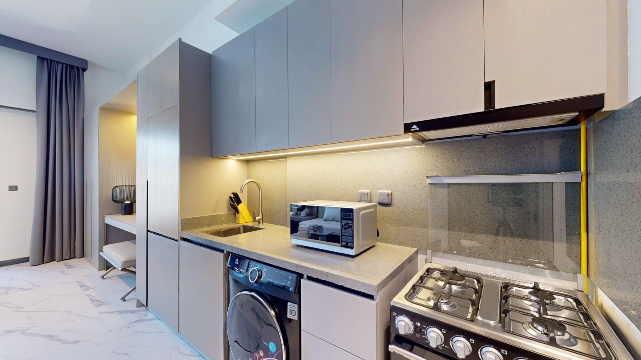 This apartment is perfect for solo travelers or couples wanting to explore Dubai in a tranquil setting. With its modern design and open-plan layout, the space effortlessly blends living, dining, and sleeping areas for a spacious feel.