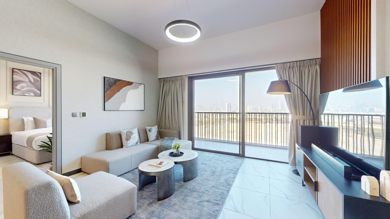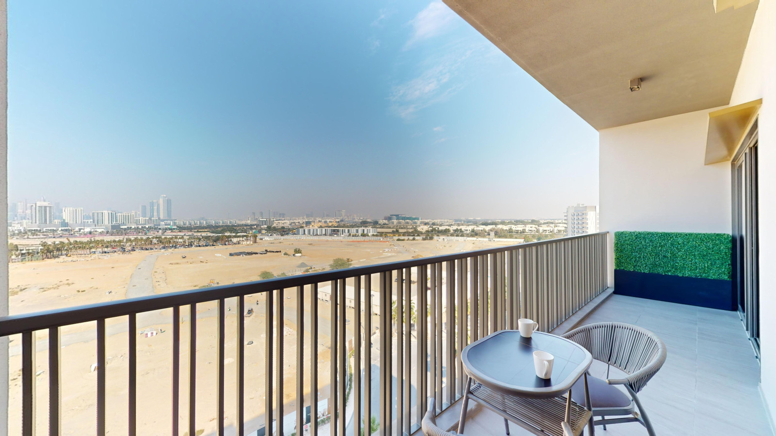 This apartment is perfect blend of convenience and serenity! Guests are able to enjoy the best of both worlds, with easy access to the excitement of Dubai’s iconic attractions—whether it’s world-class shopping, thrilling sightseeing or gourmet dining—and stay to this peaceful surroundings of the Meydan community. Also, a distant Burj Khalifa view from the balcony makes more special. It’s like having the buzz of the city at your fingertips but also the tranquility of a private haven to unwind in.