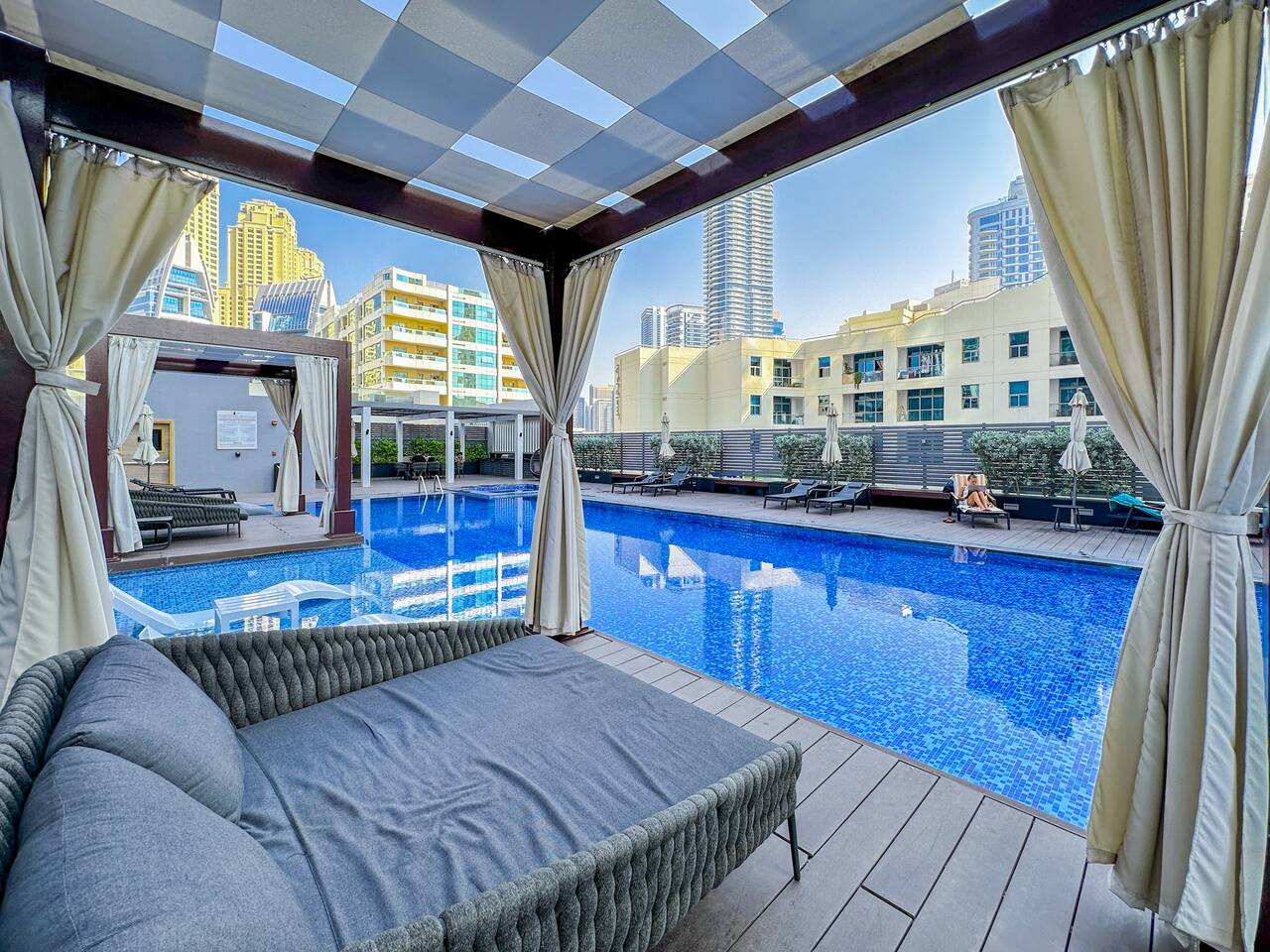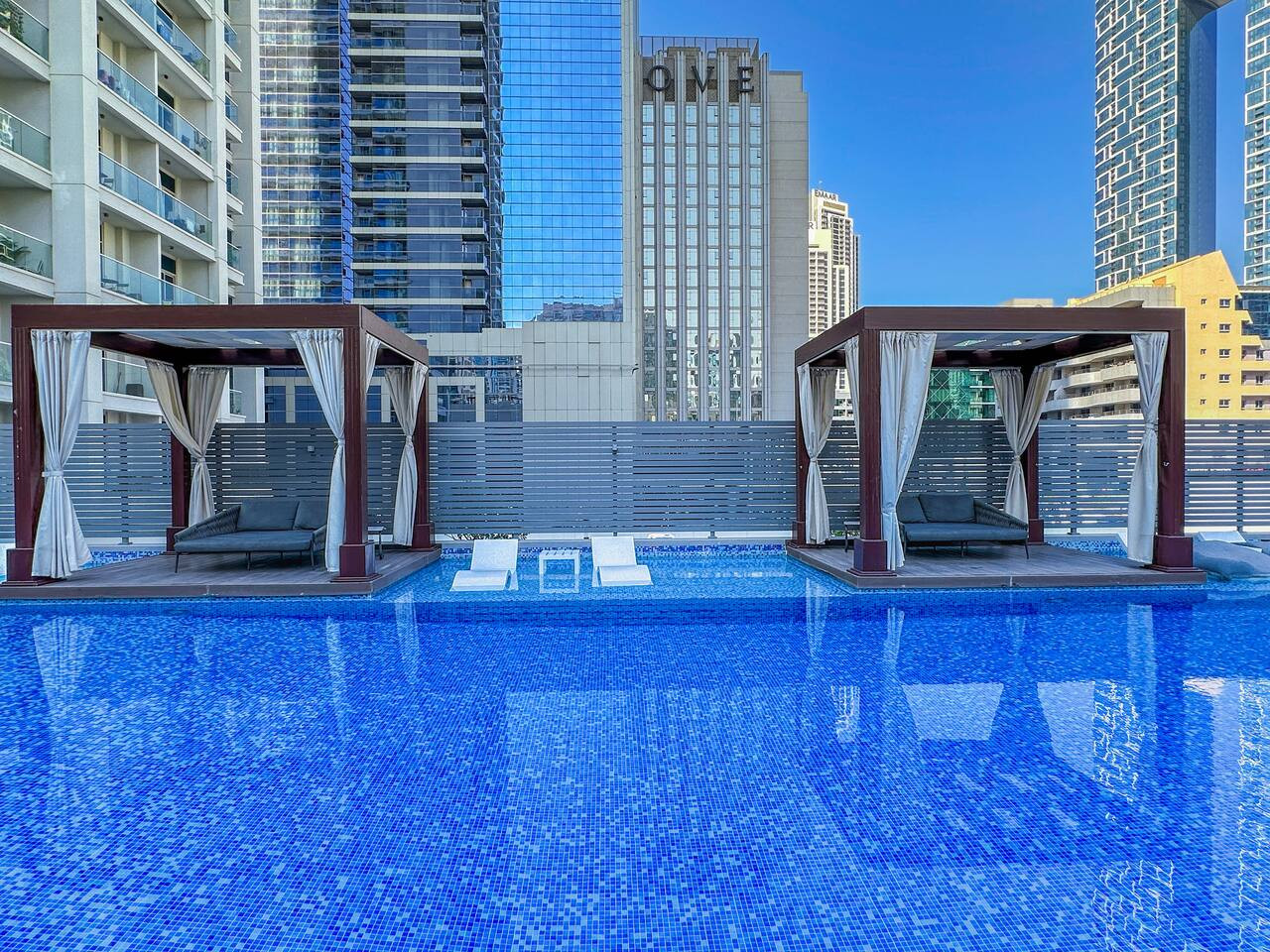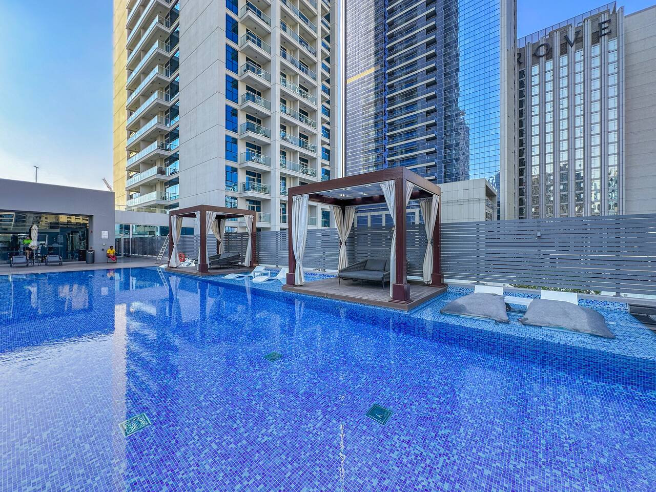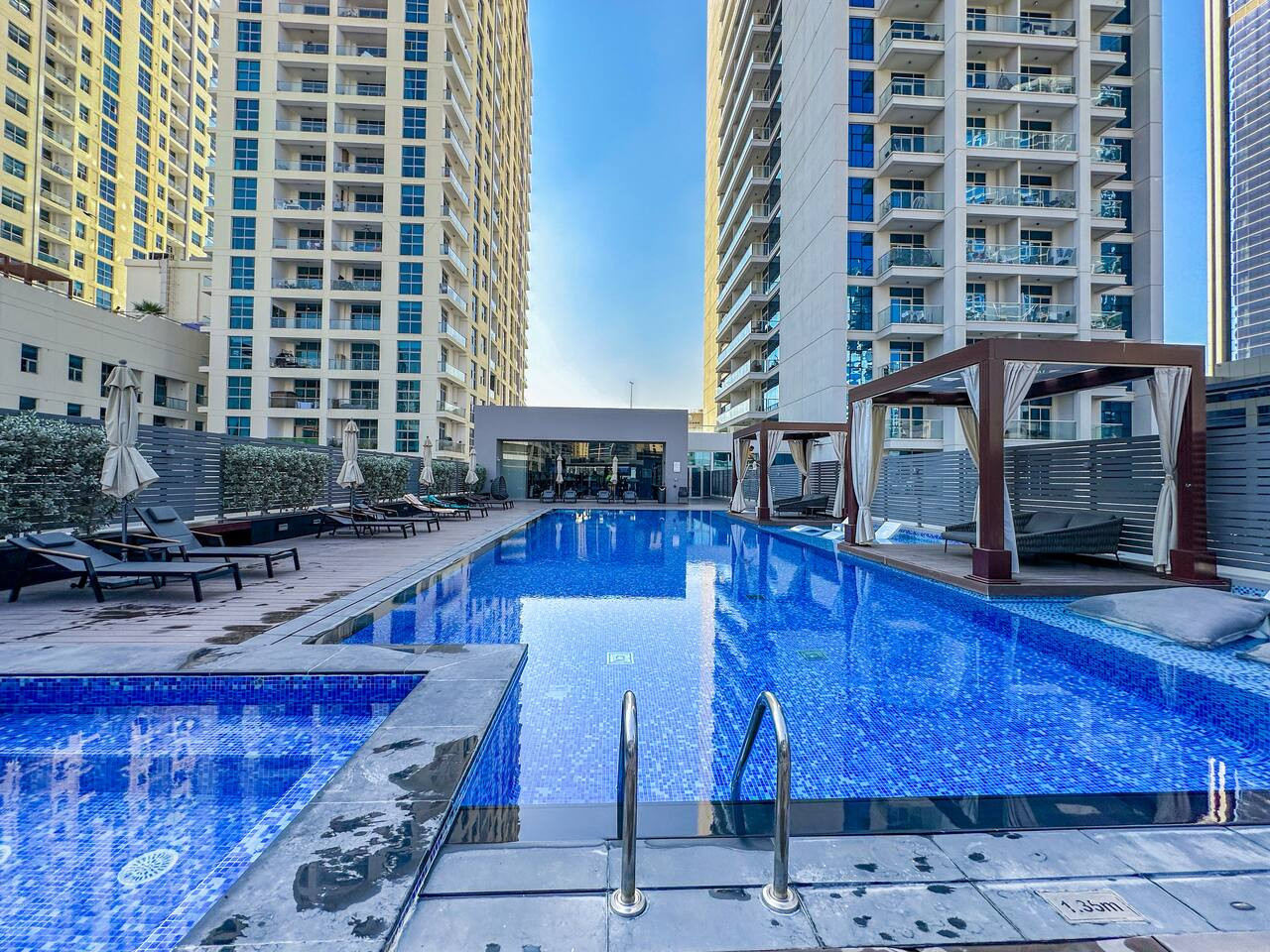 Relax in the building’s swimming pool, the perfect place to cool off and enjoy quiet moments under the warm Dubai sun.