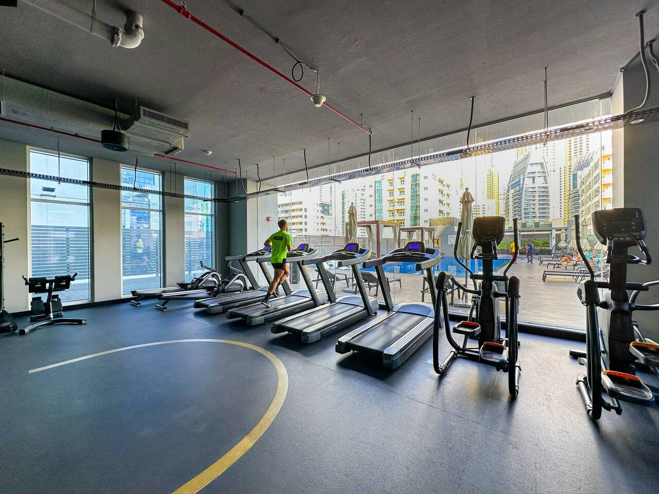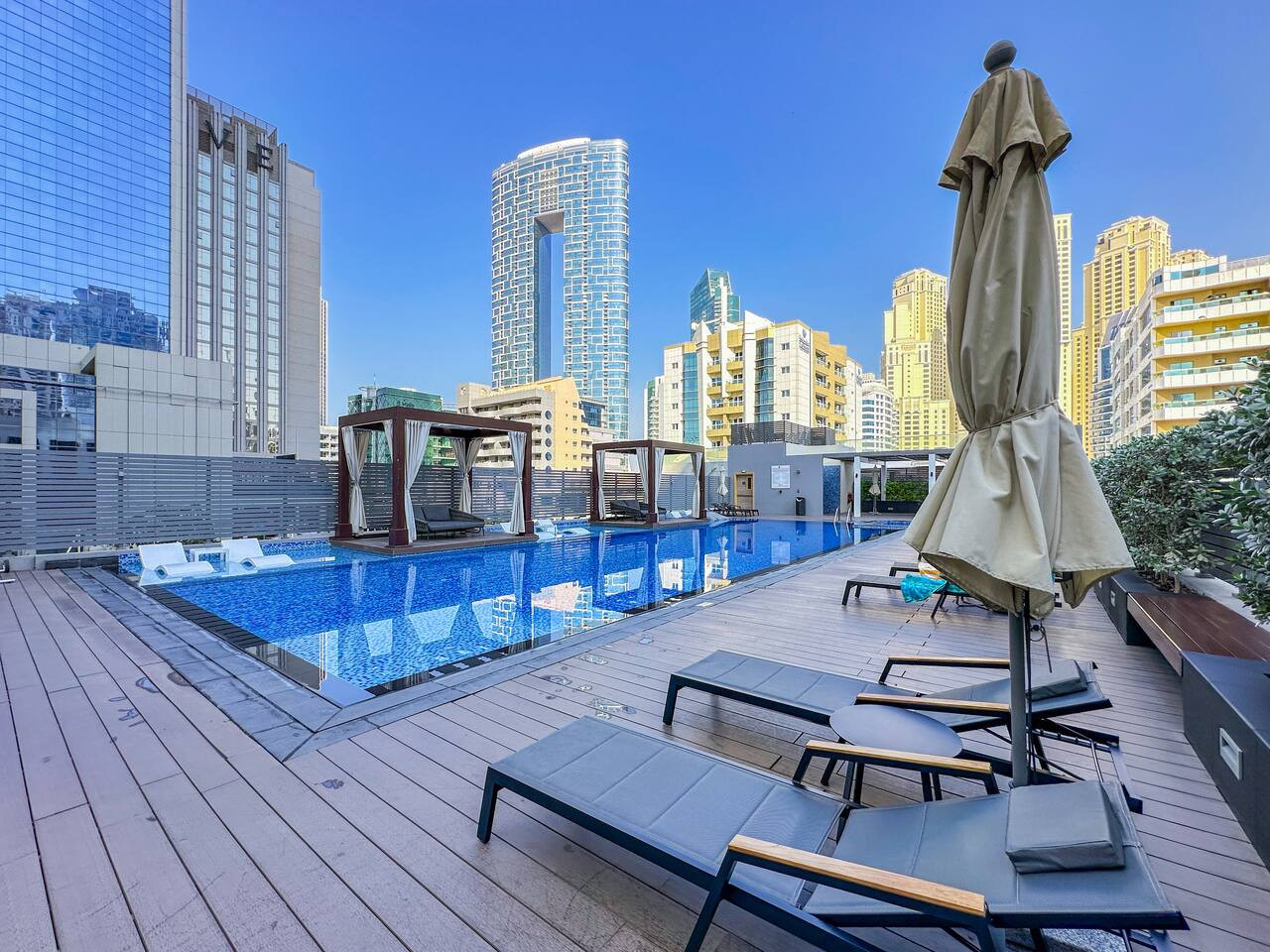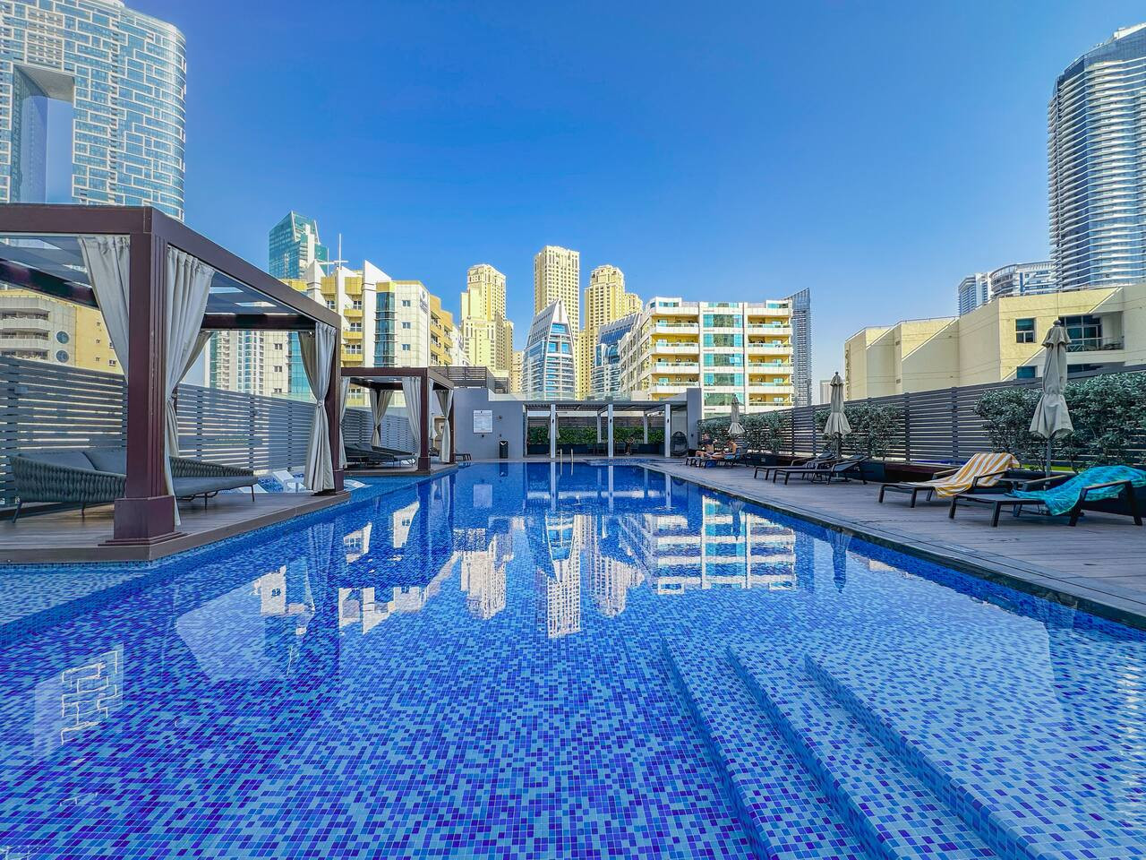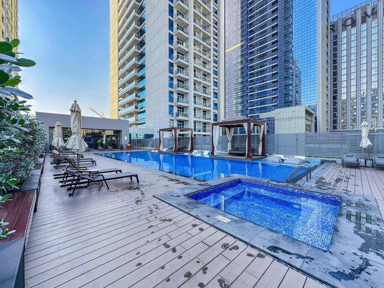 Relax in the building’s swimming pool, the perfect place to cool off and enjoy quiet moments under the warm Dubai sun.
