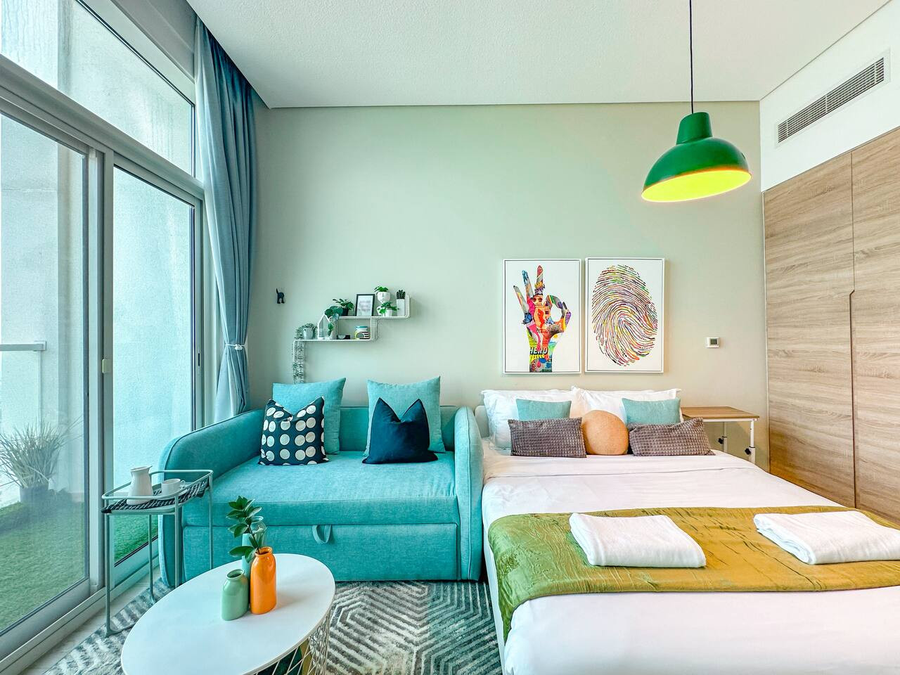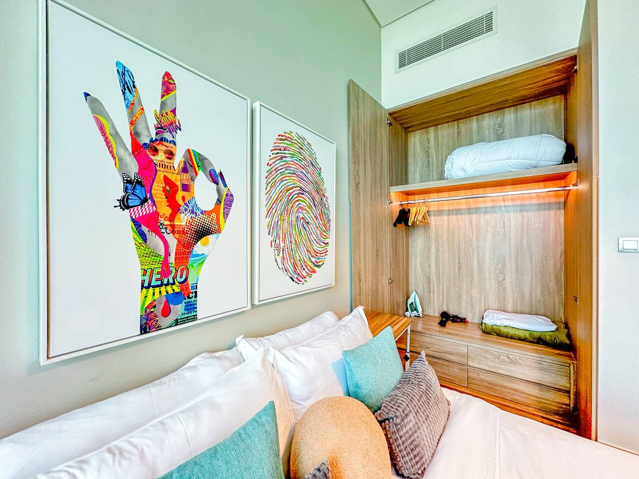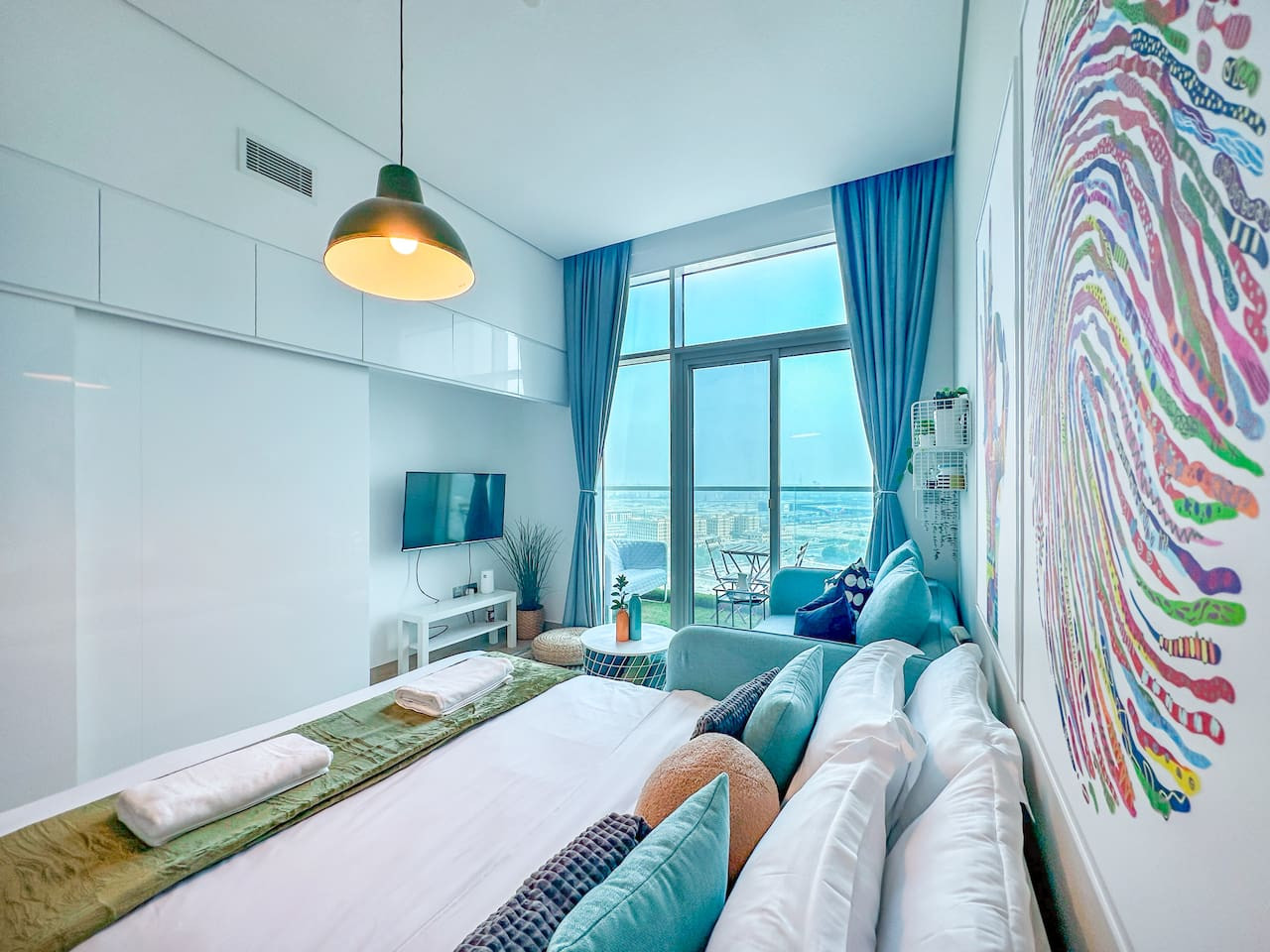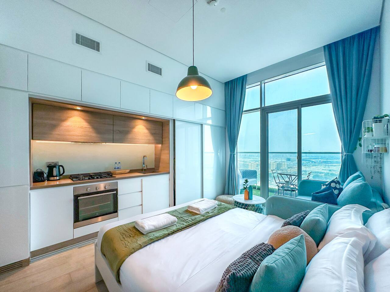 Enjoy a bright, cozy space with minimalist décor and access to a private balcony offering stunning views. The queen-size bed is ideal for 2 adults, and there’s a 1.5m-wide sofa that can comfortably fit 2 childrens.