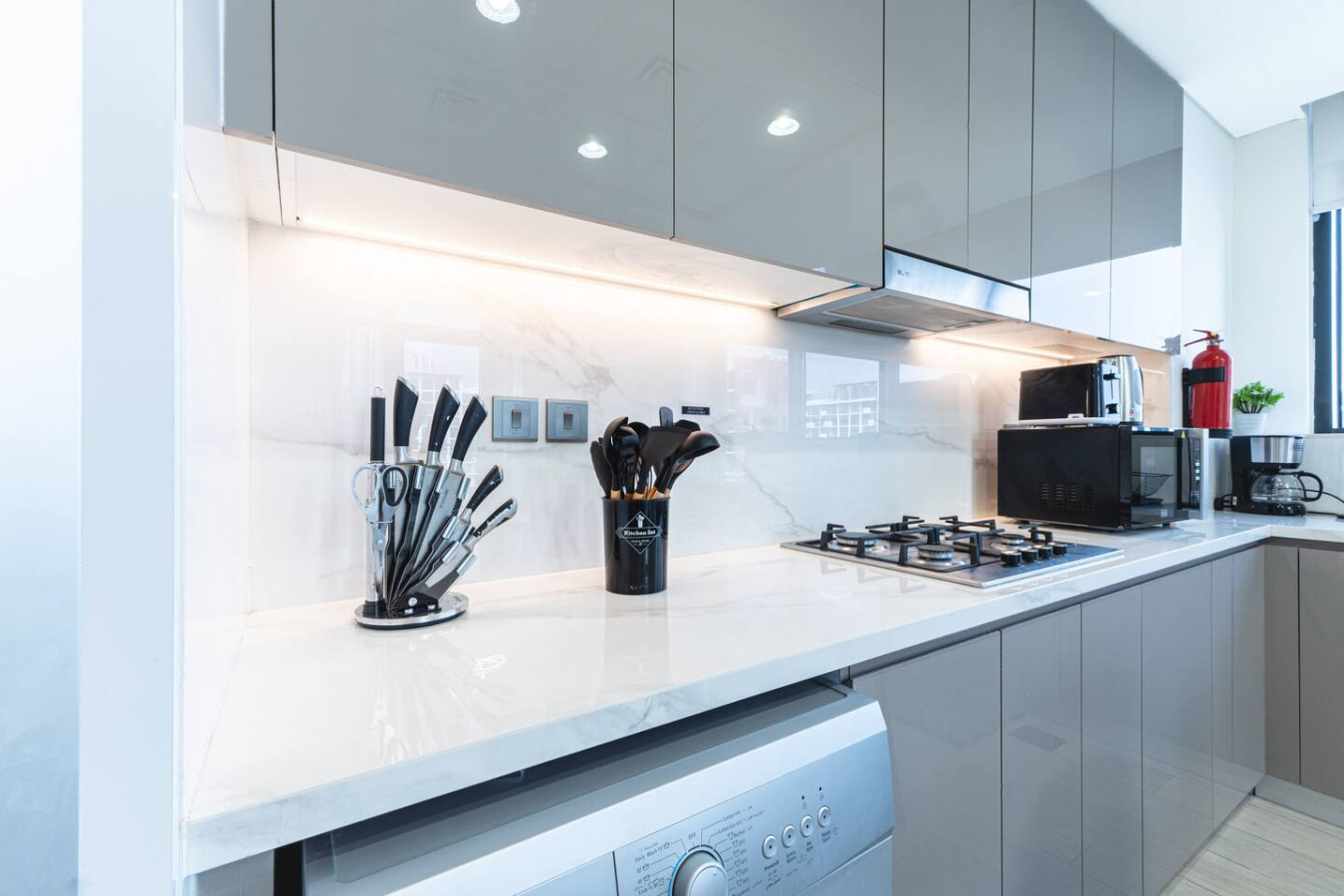 Fully equipped kitchen with essential utensils