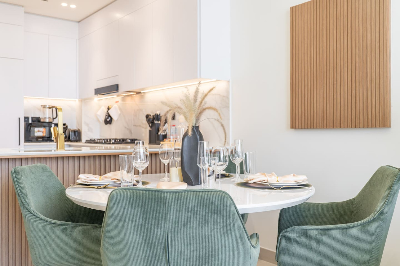 – A fully equipped kitchen – top-notch appliances, cooking necessities.