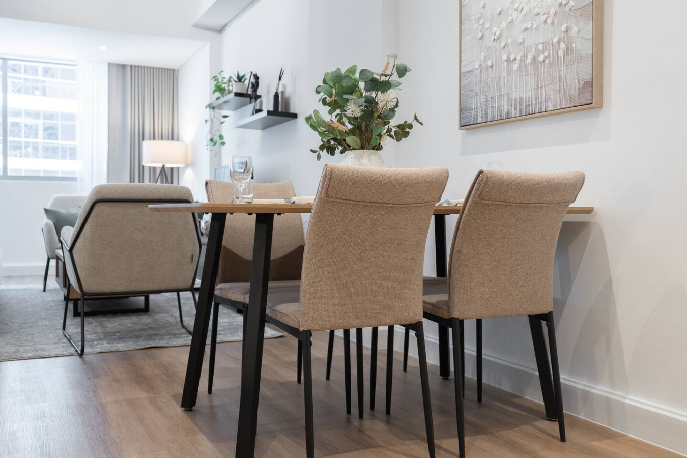 • Modern living and dining space with floor-to-ceiling windows and natural light