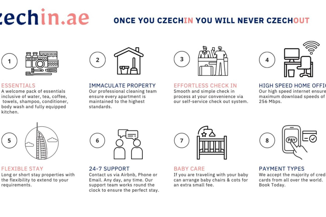 Hello, my name is Jiri and i am from the Czech Republic, living 13+ years in Dubai. I am the founder of Czechin Holiday Homes & Real Estate LLC. We offer a wide range of rental apartments across Dubai. My experienced guest relation team will be available round the clock to assist you with anything you need and to make your stay a memorable one! Looking forward to host you or just have a chat about property investment with following property management 😉