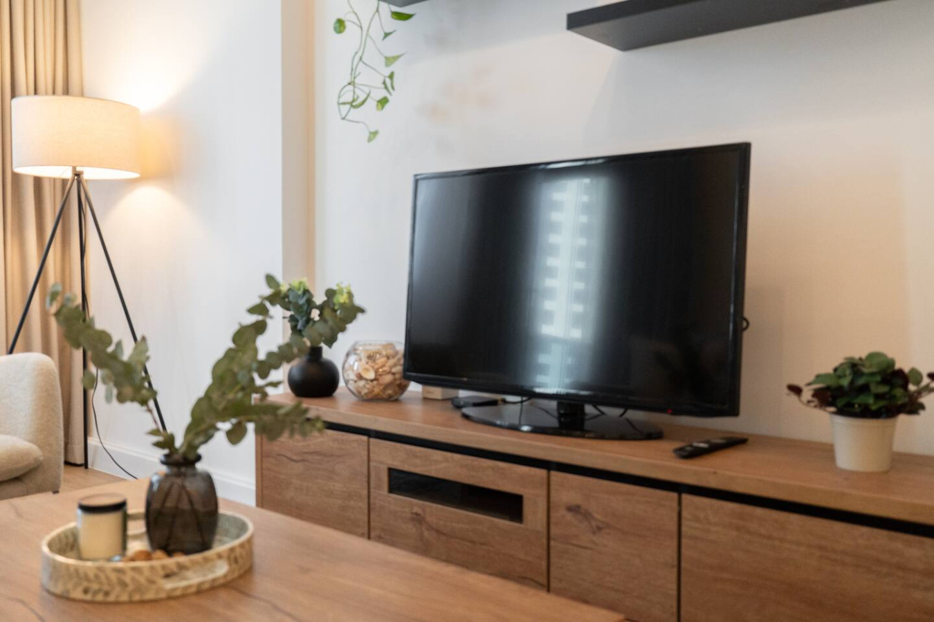 • Cozy living space with sofa, smart TV, and high-speed Wi-Fi