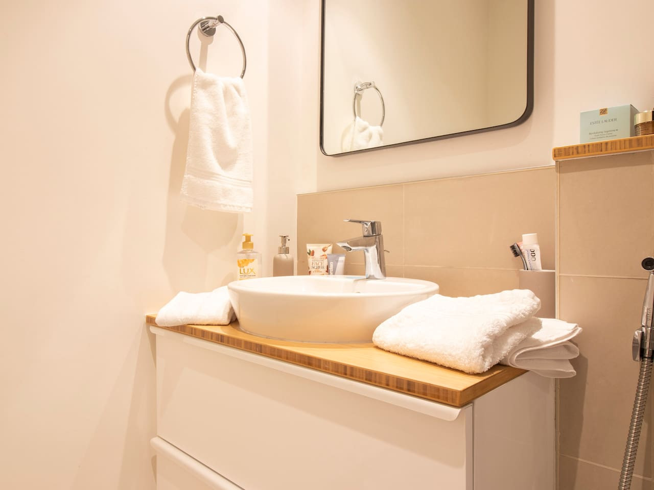 Refresh in a spotless, modern bathroom equipped with everything you need for a relaxing stay.