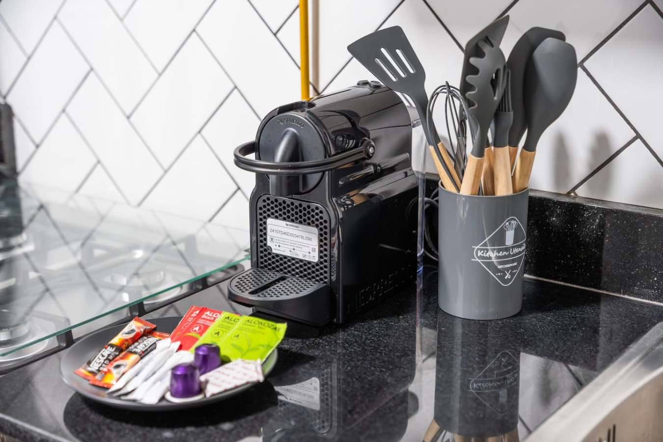 Fully equipped kitchen with modern appliances