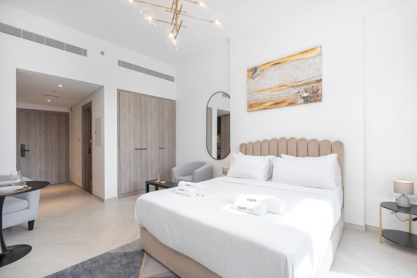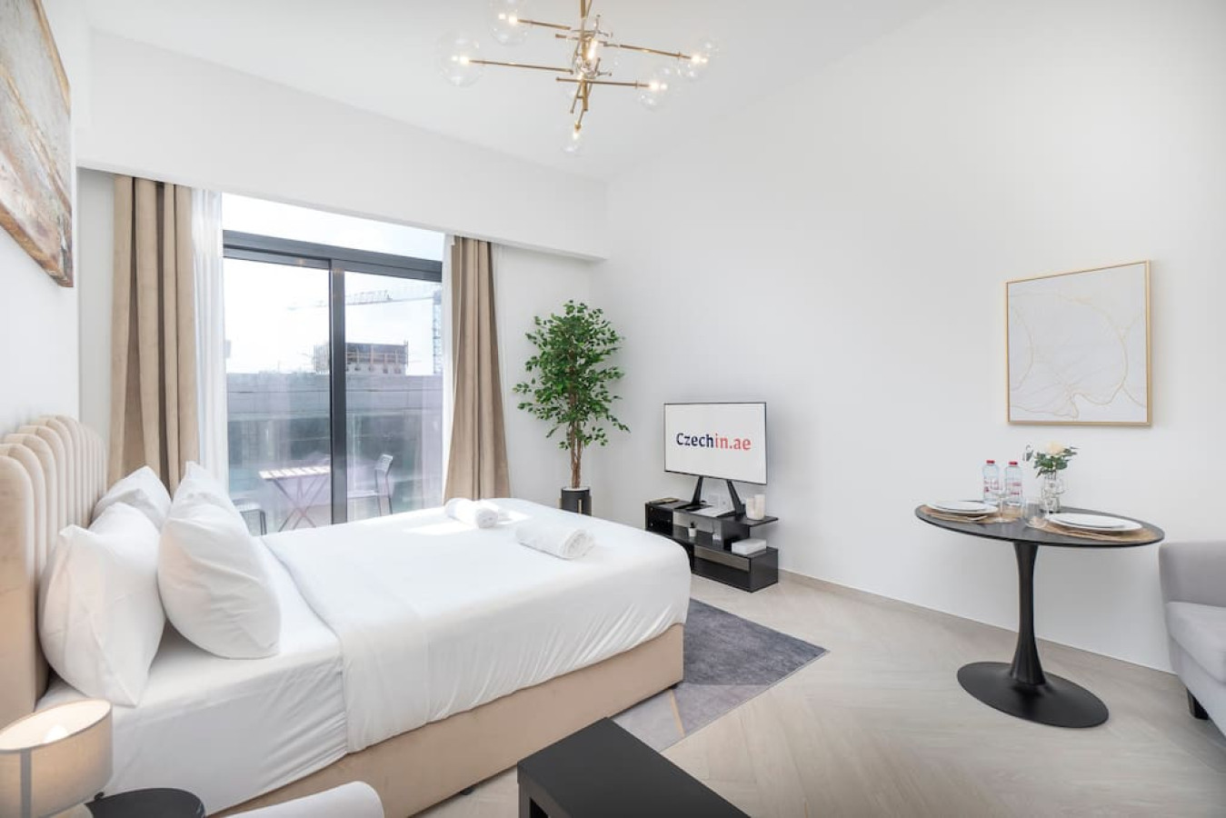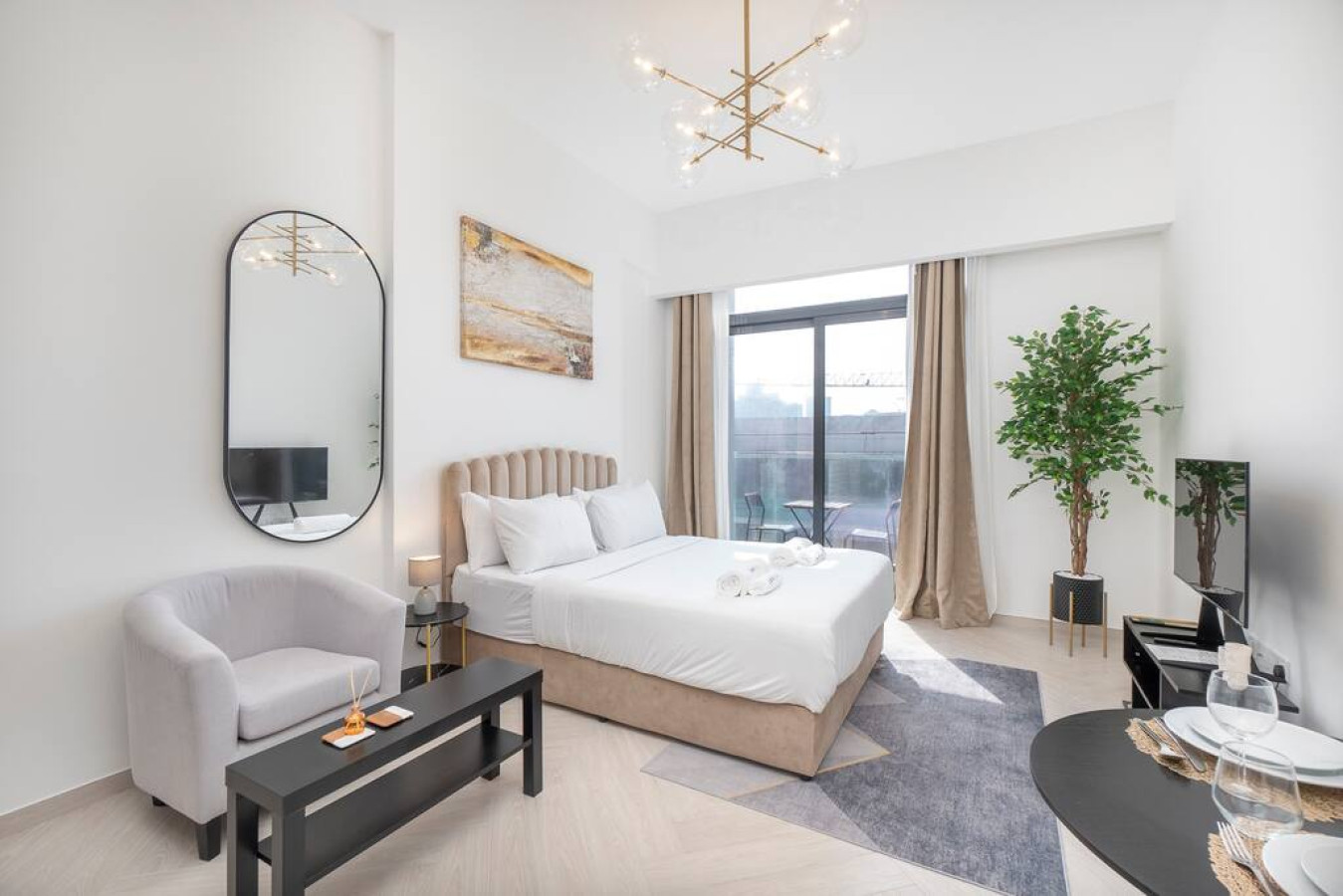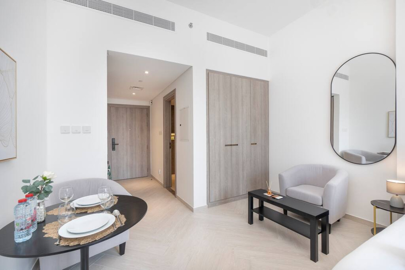 Welcome to your modern studio in the prestigious Oxford 212 building, nestled in the heart of Jumeirah Village Circle (JVC). The studio is tastefully furnished for a comfortable stay, and the building boasts exceptional facilities.