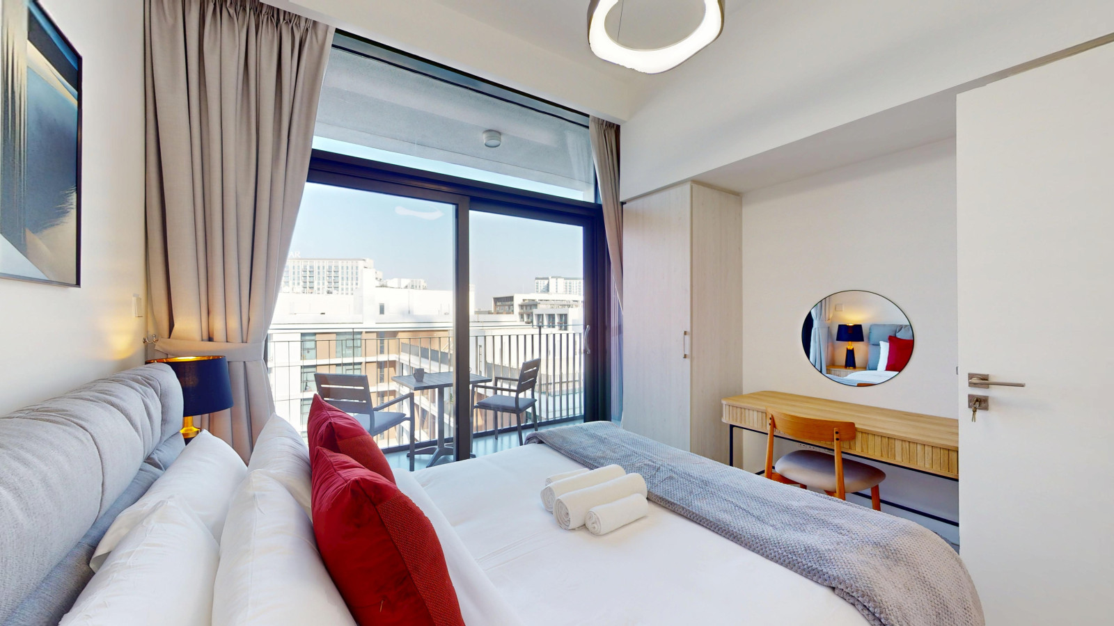– Fully furnished balcony with pool view. The balcony is also accessible from the second bedroom