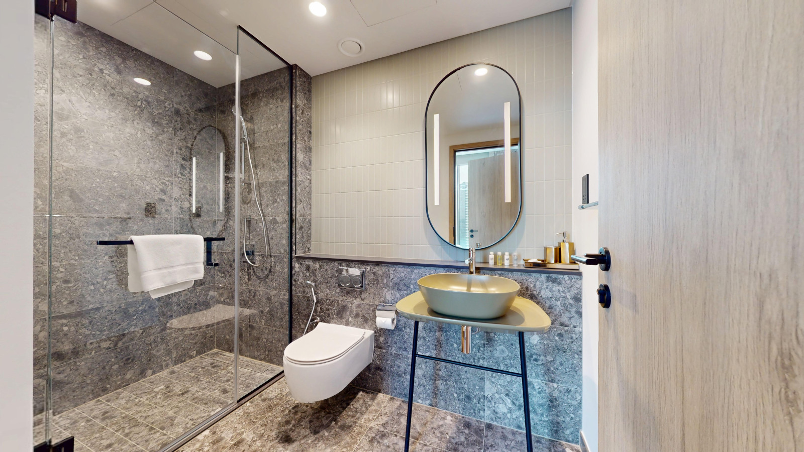 – En-suite bathroom with walk-in shower and essential amenities