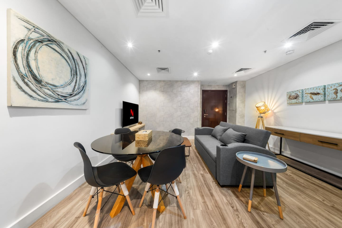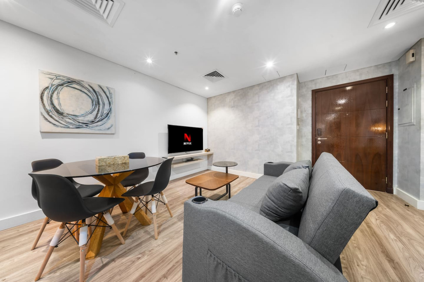 Welcome to your modern 1-bedroom getaway in Dubai Marina, perfectly located just a 5-minute walk to Marina Beach and JBR Walk. Enjoy endless dining, cafรฉs, and nightlife options right at your doorstep, with the tram station around the corner and the metro only 10 minutes away for easy access across Dubai.