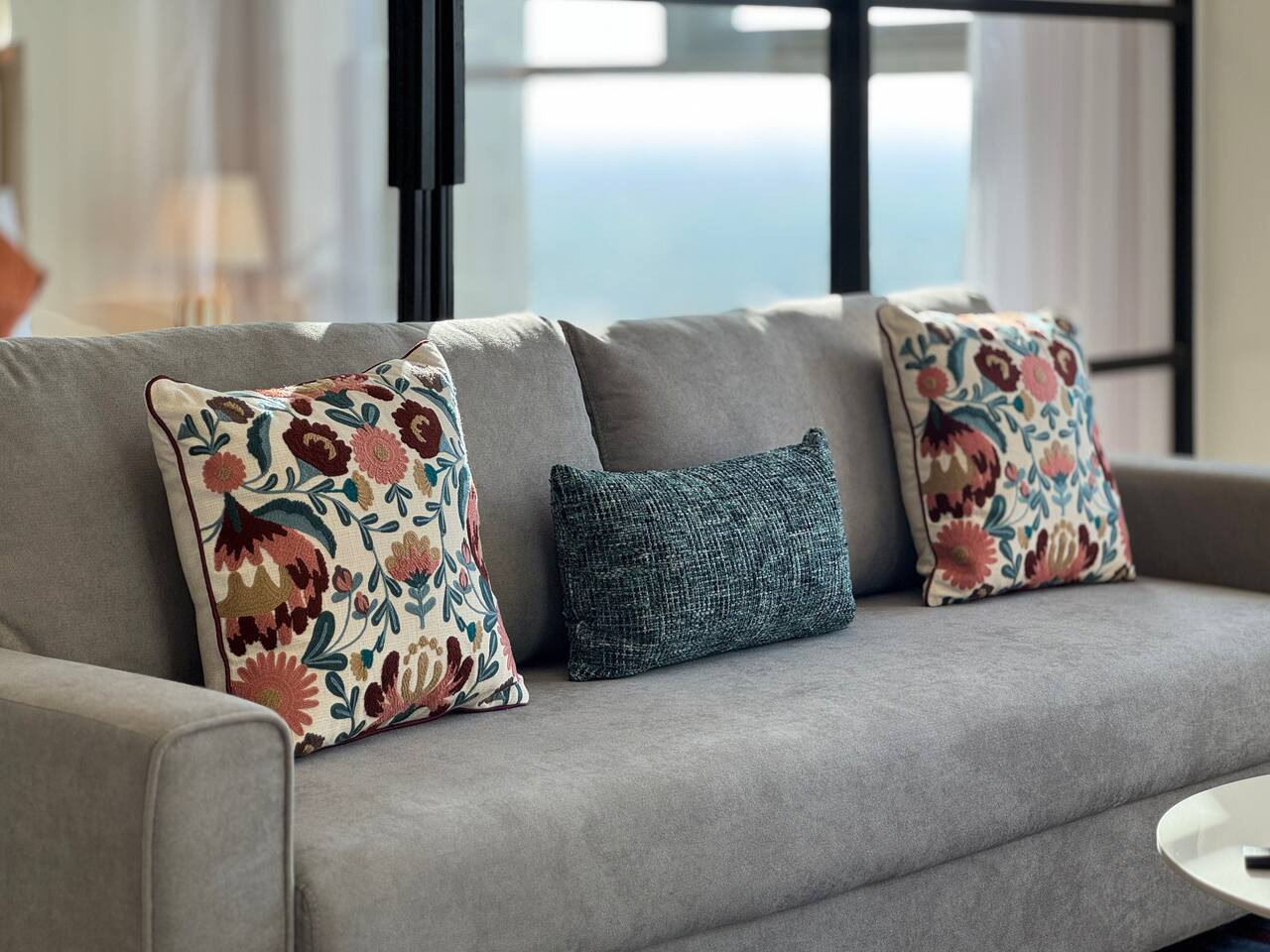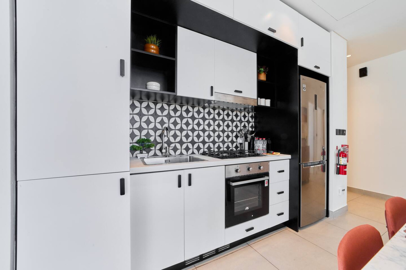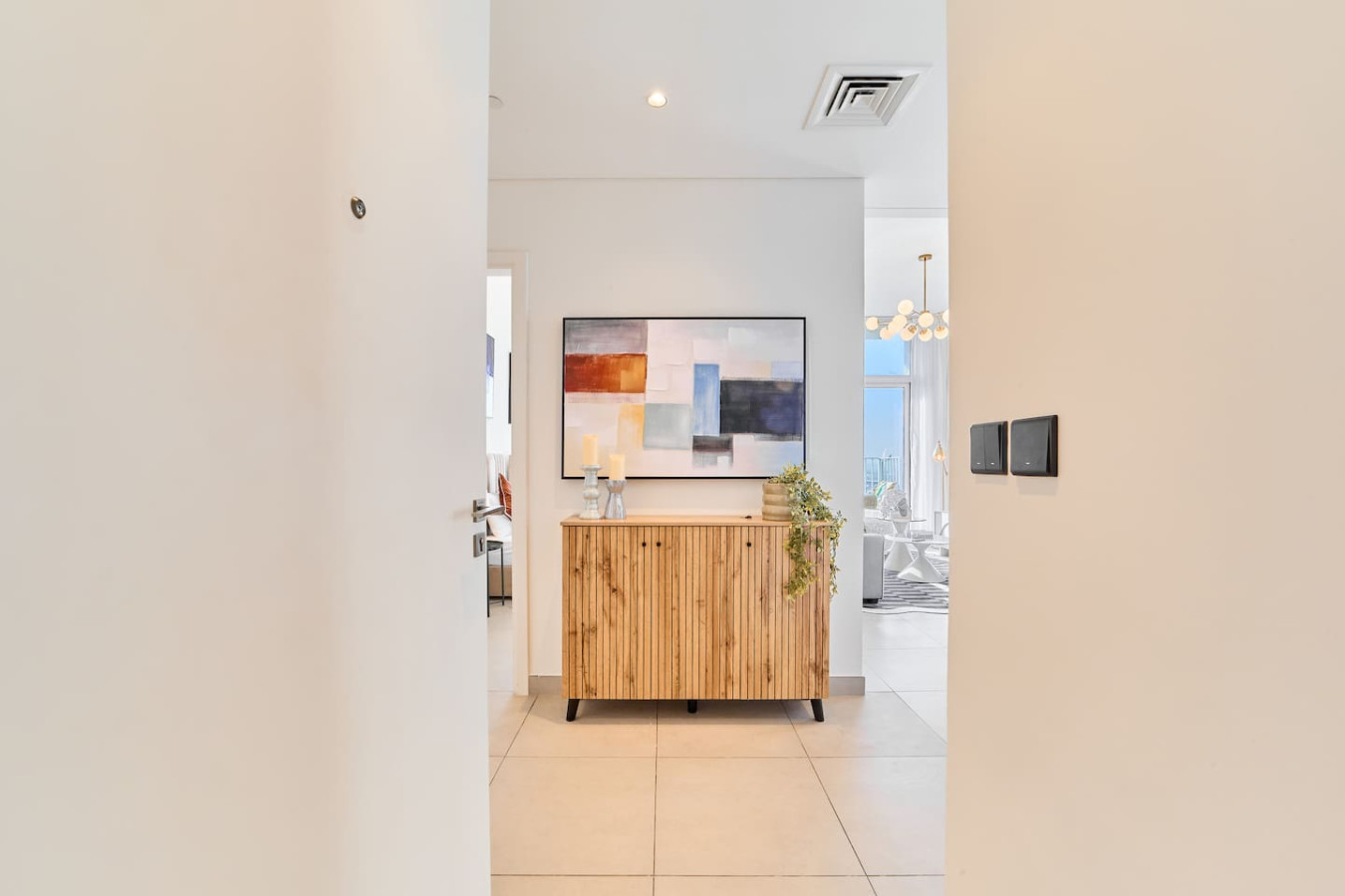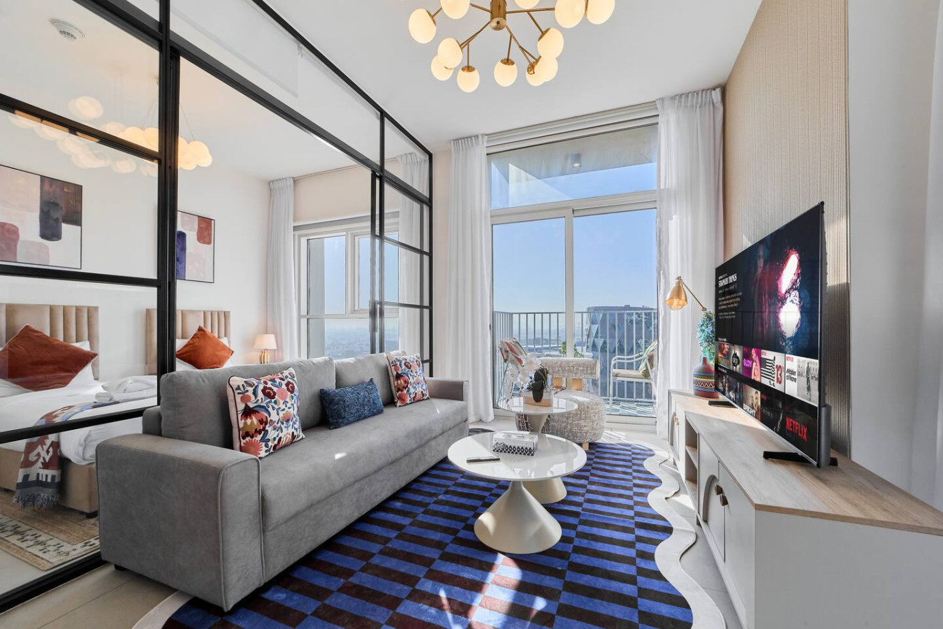 Step into a bright and stylish living space designed for comfort and flexibility. Relax on the plush sofa (which converts into a sofa bed for extra guests), enjoy your favorite shows on the Smart TV, or unwind on the balcony overlooking Dubai Hills Mall, perfect for your morning coffee or evening wind-down.