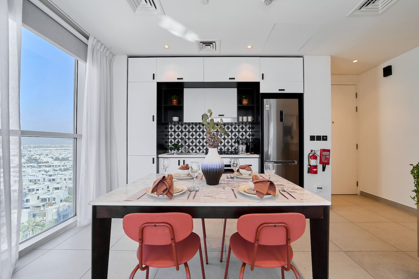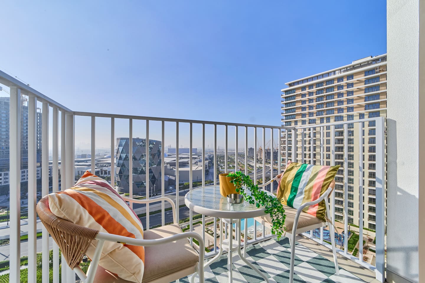 Welcome to your stylish retreat in the heart of Dubai Hills Estate. This smartly designed 2-bedroom apartment blends comfort and functionality within a modern space, perfect for couples, friends, or business travelers.