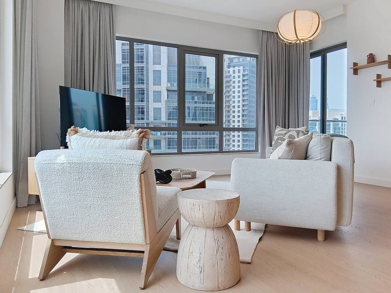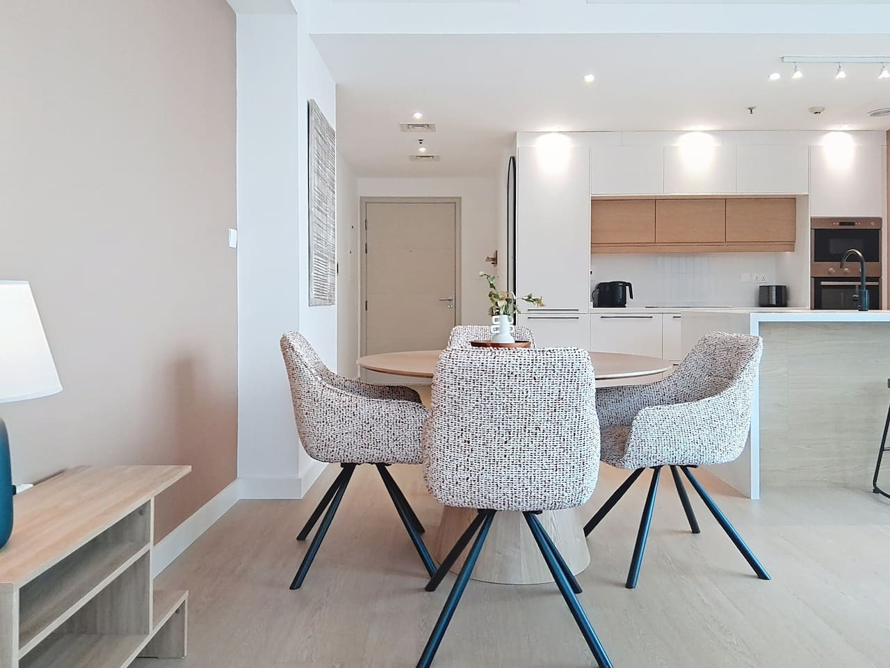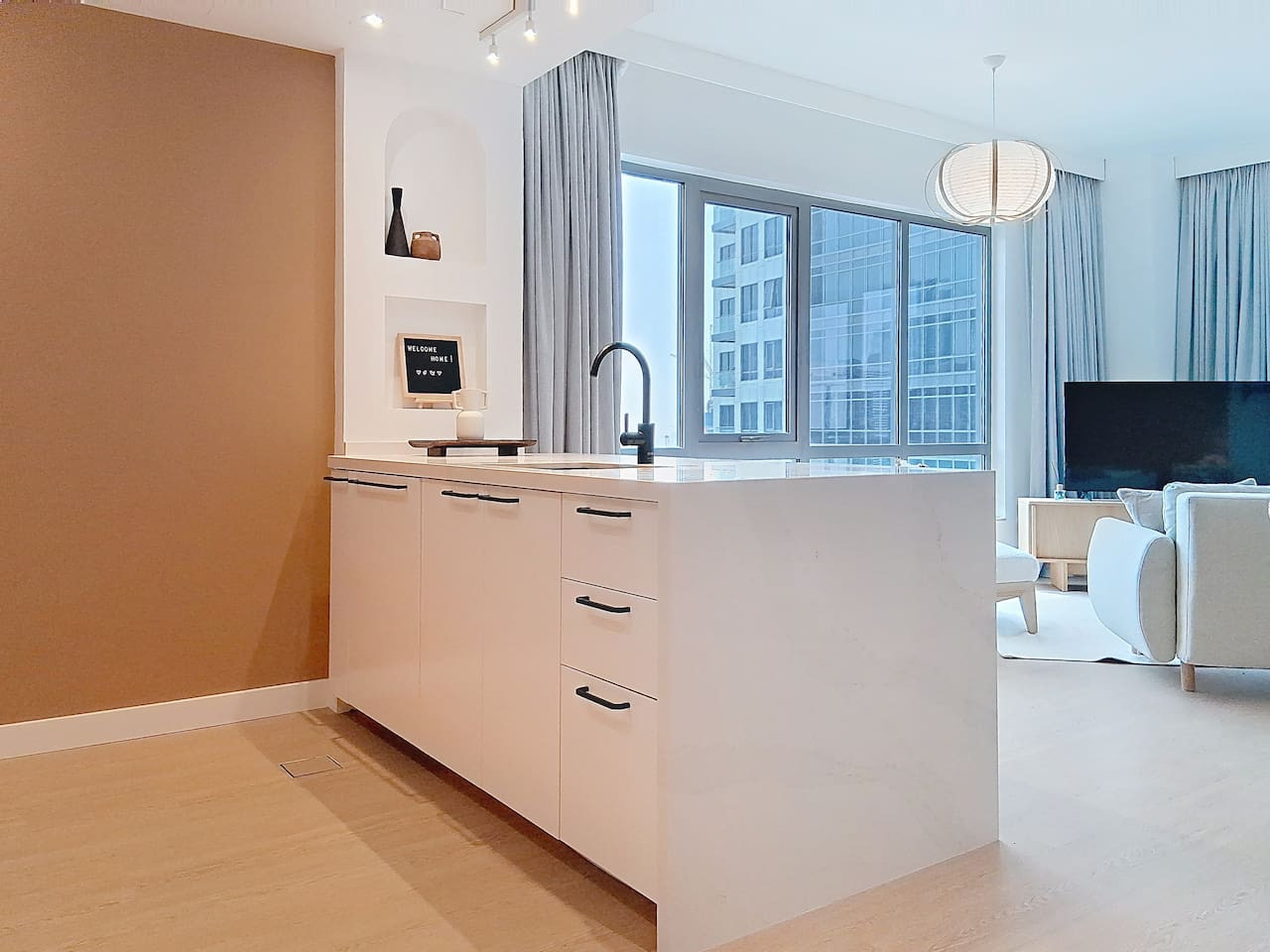 Modern and simple elegance define this beautifully designed one-bedroom apartment, perfect for couples or solo travellers seeking comfort and style. The space features brand-new, tasteful furnishings that create a warm and inviting atmosphere, complemented by access to state-of-the-art building facilities.