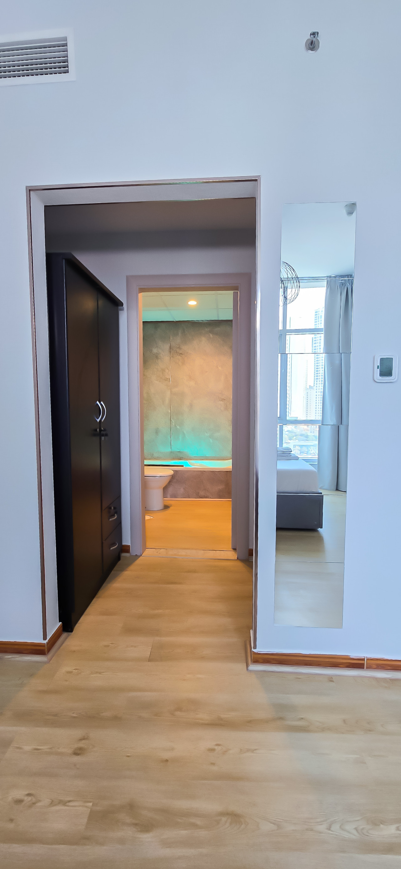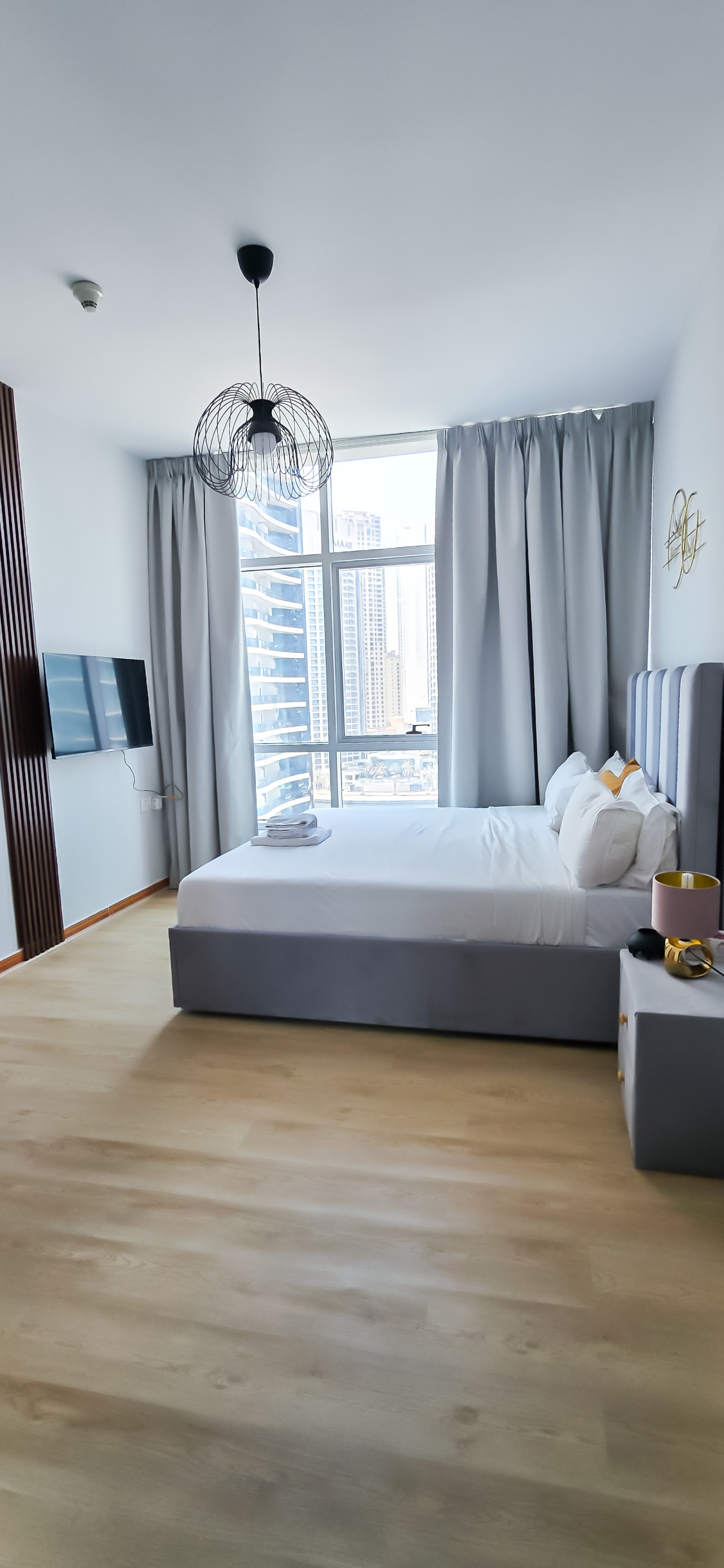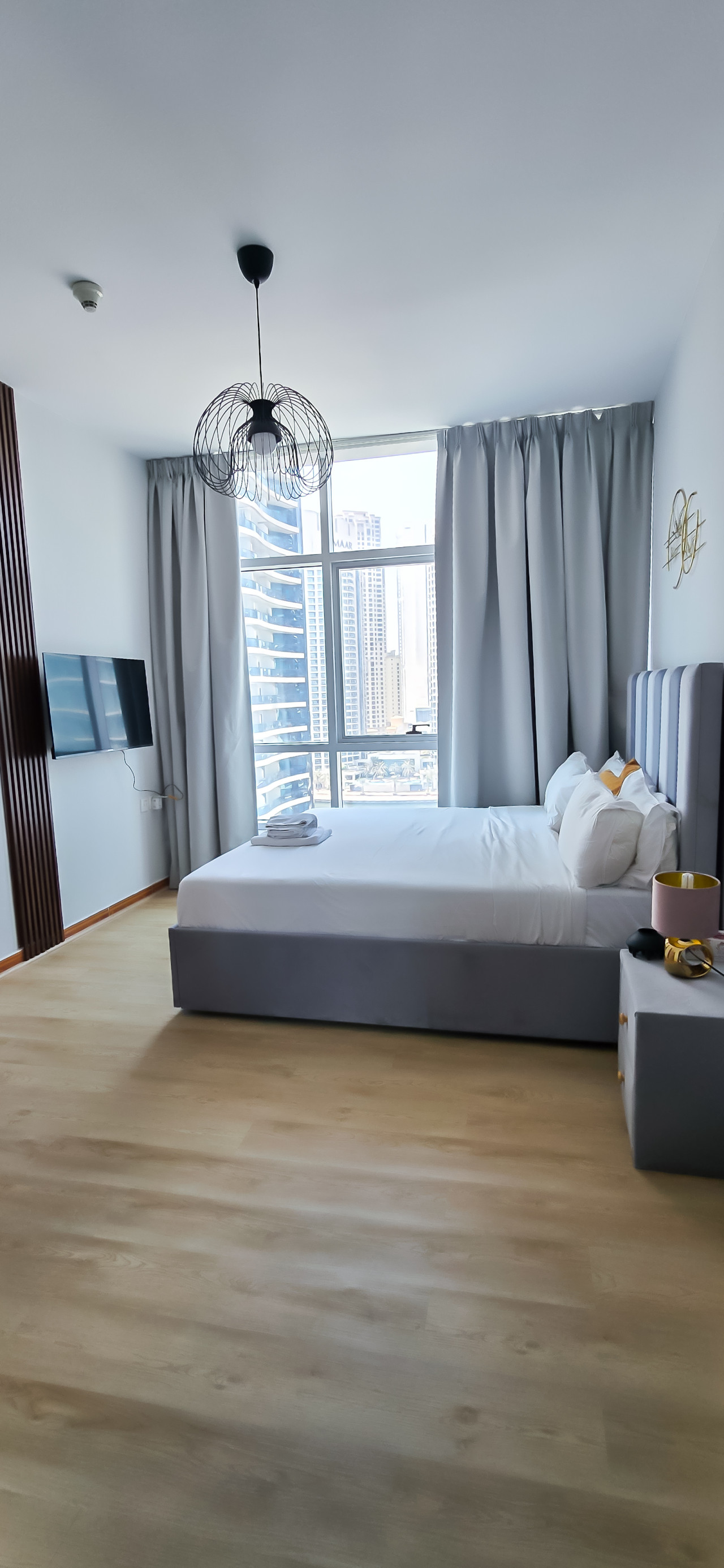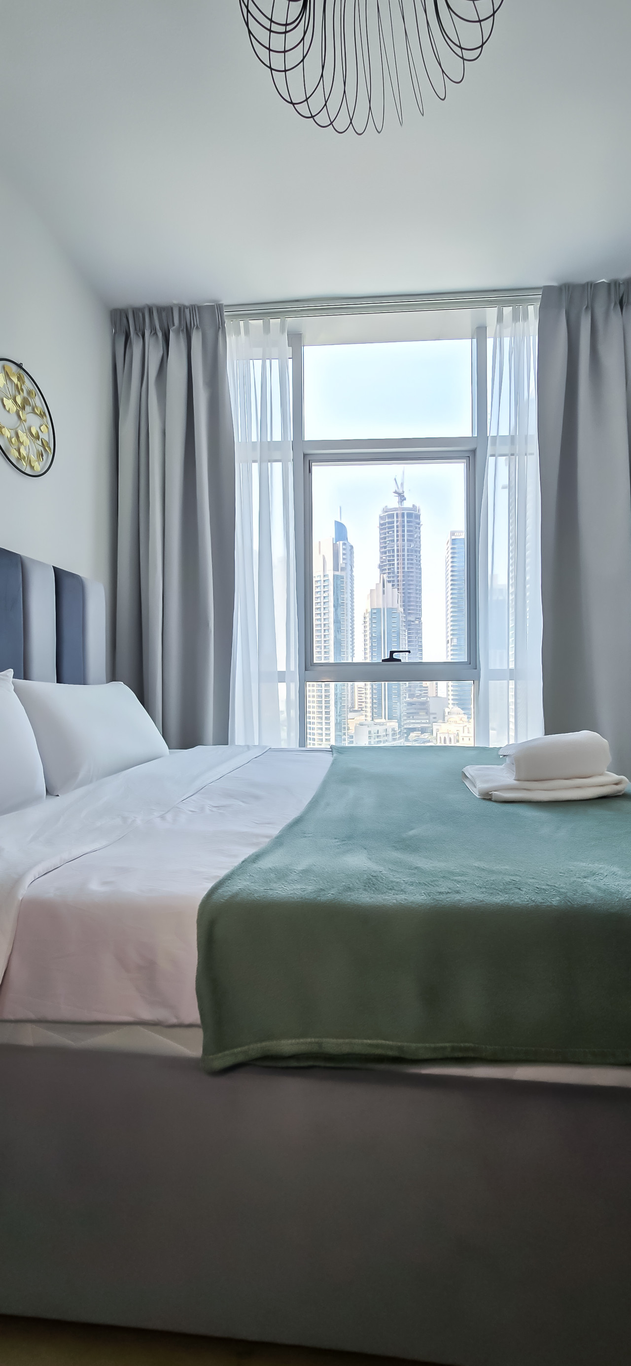 Positive: Классная квартира с шикарным видом! 2 отдельные полноценные спальни, 2 ванные комнаты. Negative: Сама квартира не супер новая в плане ремонта, но все достойное. Но видно, что ремонту уже есть время . Локация и вид из окон топ!!! Постель чистая, белоснежная. Самое главное, это супер удобная локация, супермаркет в доме, метро. И потрясающий район Дубай Марина.