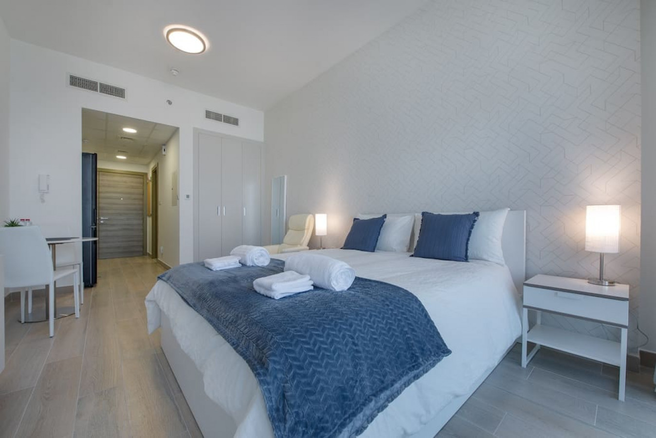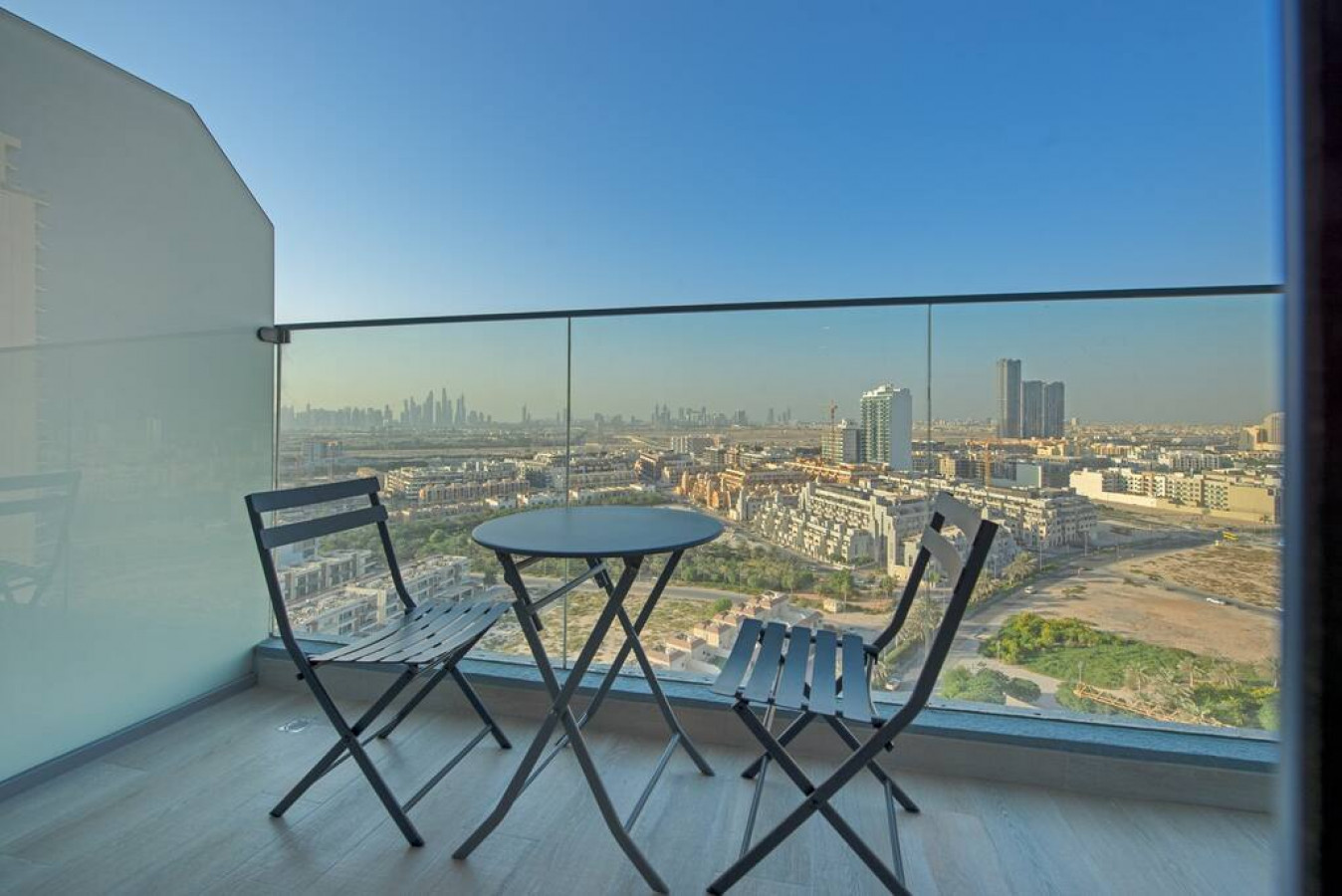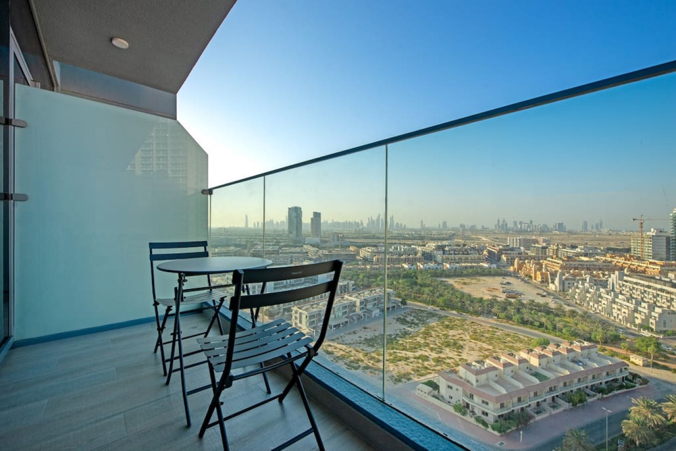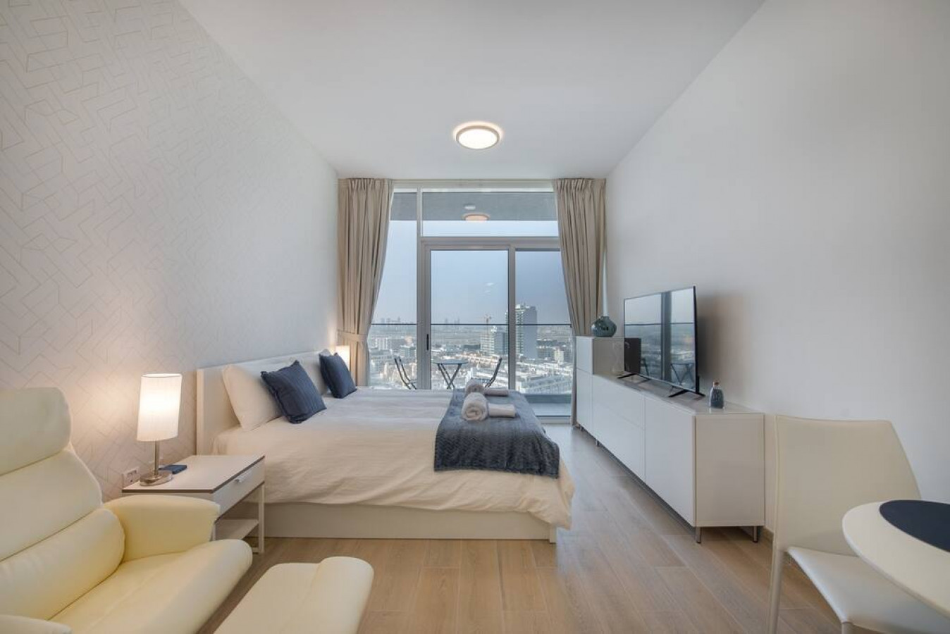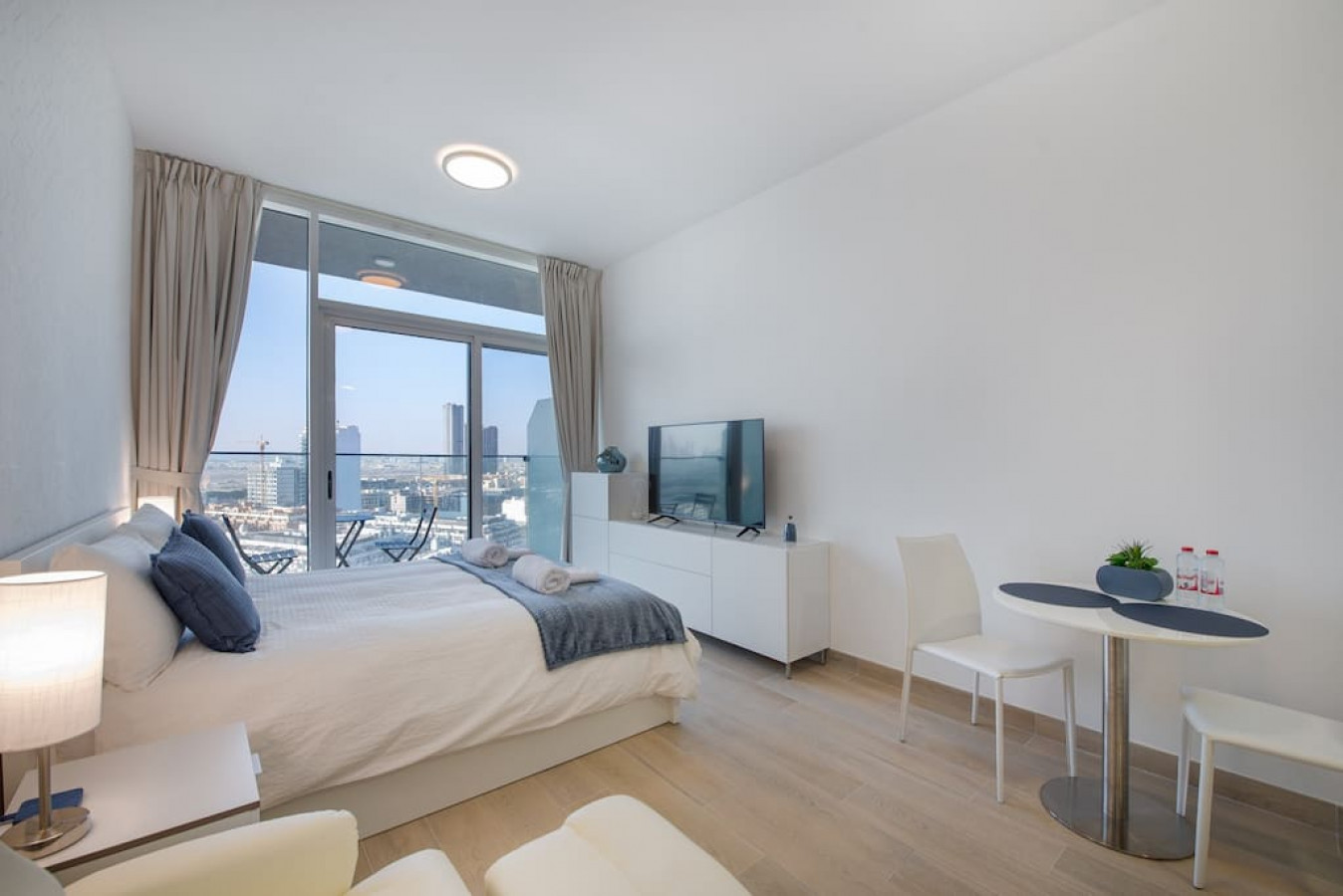 Brand new studio apartment with most comfortable queen size bed, located in Jumeirah Village Circle with a balcony and its spectacular Dubai views.