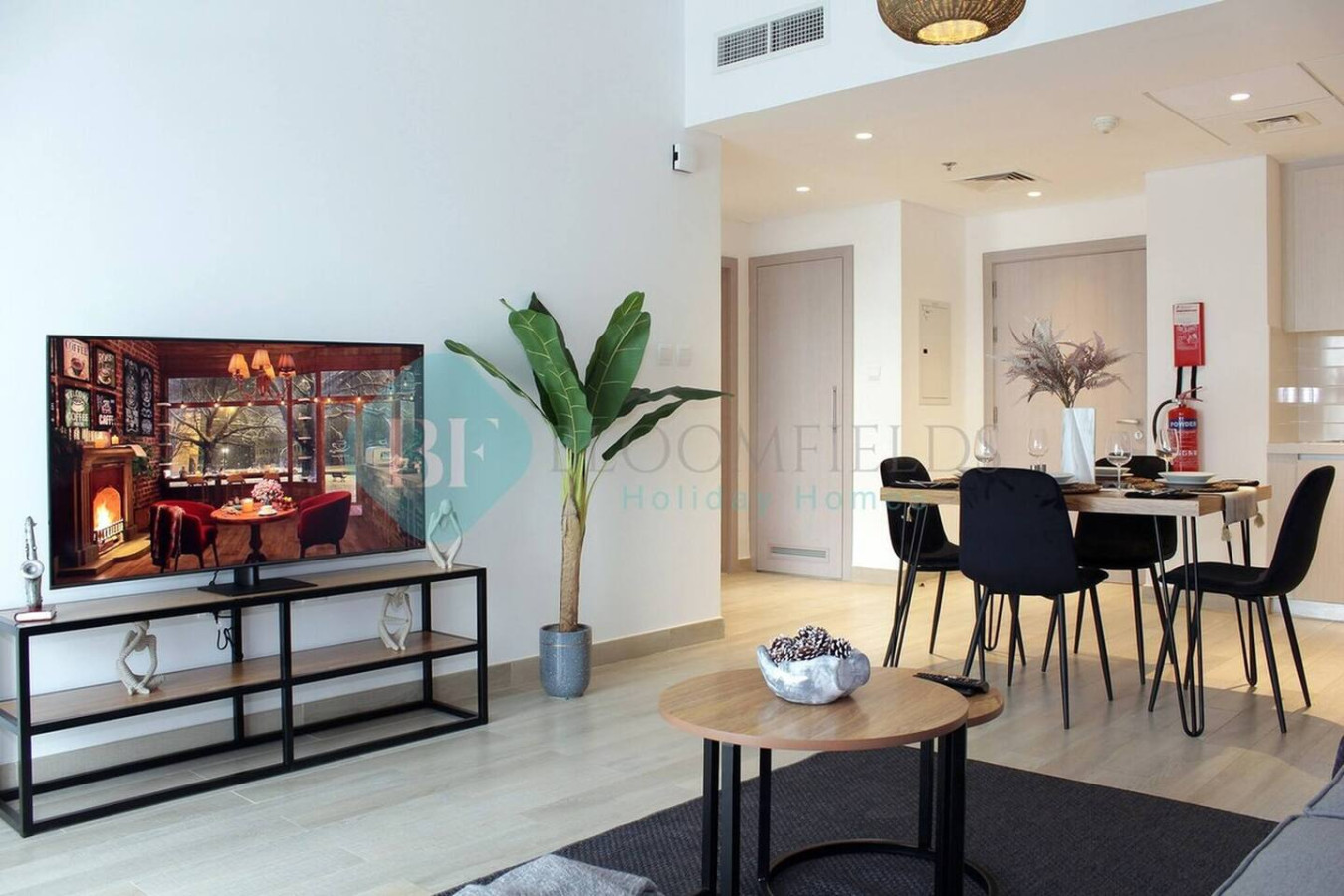 o brand-new appliances, including (a big smart TV, refrigerator, washing machine, electric kettle, microwave, oven, stove)