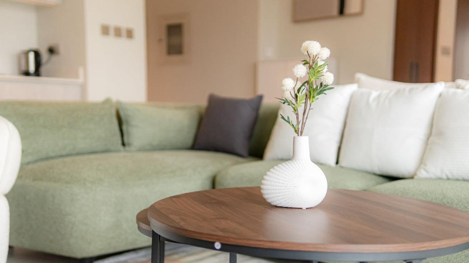Perfect for two couples or a family of four, the apartment features high-speed Wi-Fi (avg. 250 Mbps), air conditioning, and all essentials for a comfortable stay. The open-plan living and dining area includes a fully equipped kitchen with fridge, oven, stove, dishwasher, and coffee machine. Guests can gather around the six-seater dining table or relax in the living area with a smart TV, large sofa, and access to a furnished patio with city views. A separate laundry room is also available.
