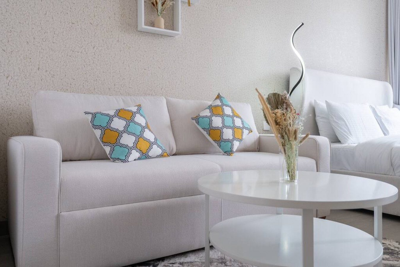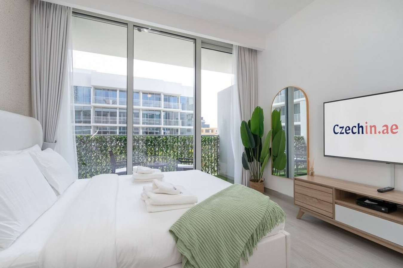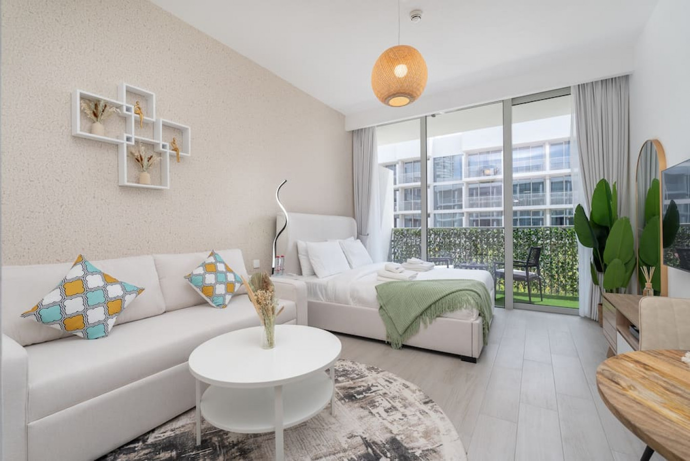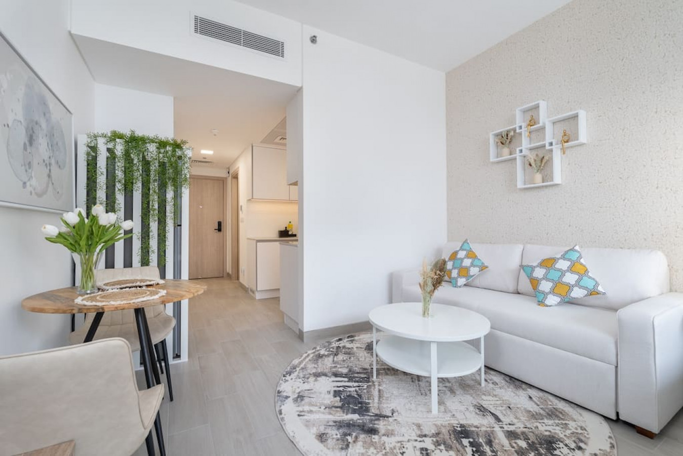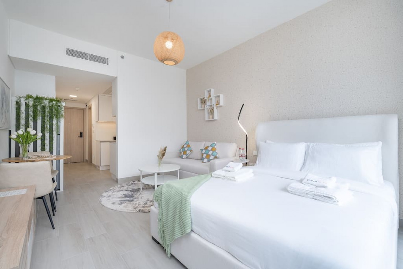 Brand new studio apartment with most comfortable queen size bed, located in Jumeirah Village Circle with a balcony in Luma 21.