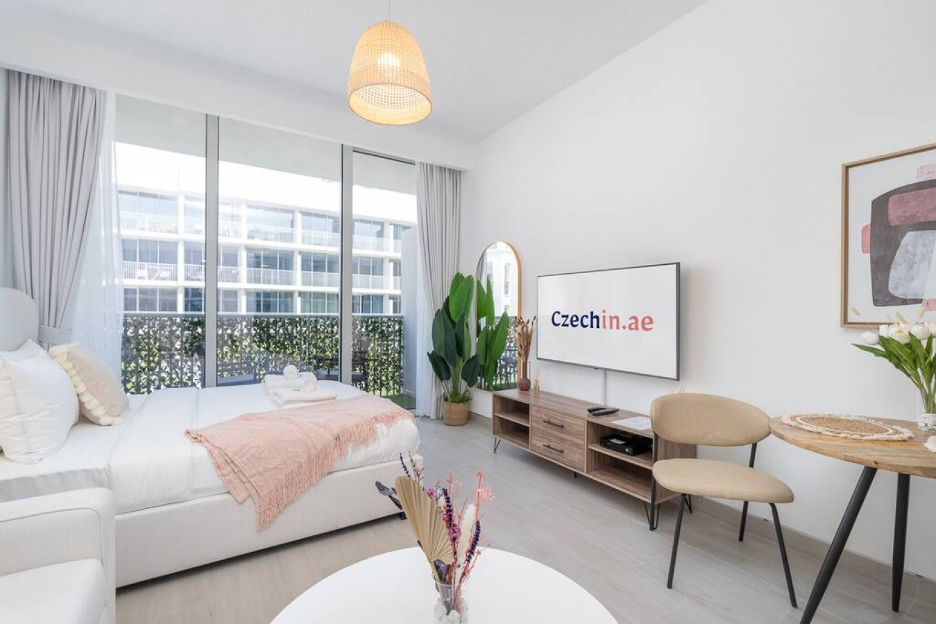Brand new studio apartment with most comfortable queen size bed, located in Jumeirah Village Circle with a balcony in Luma 21.